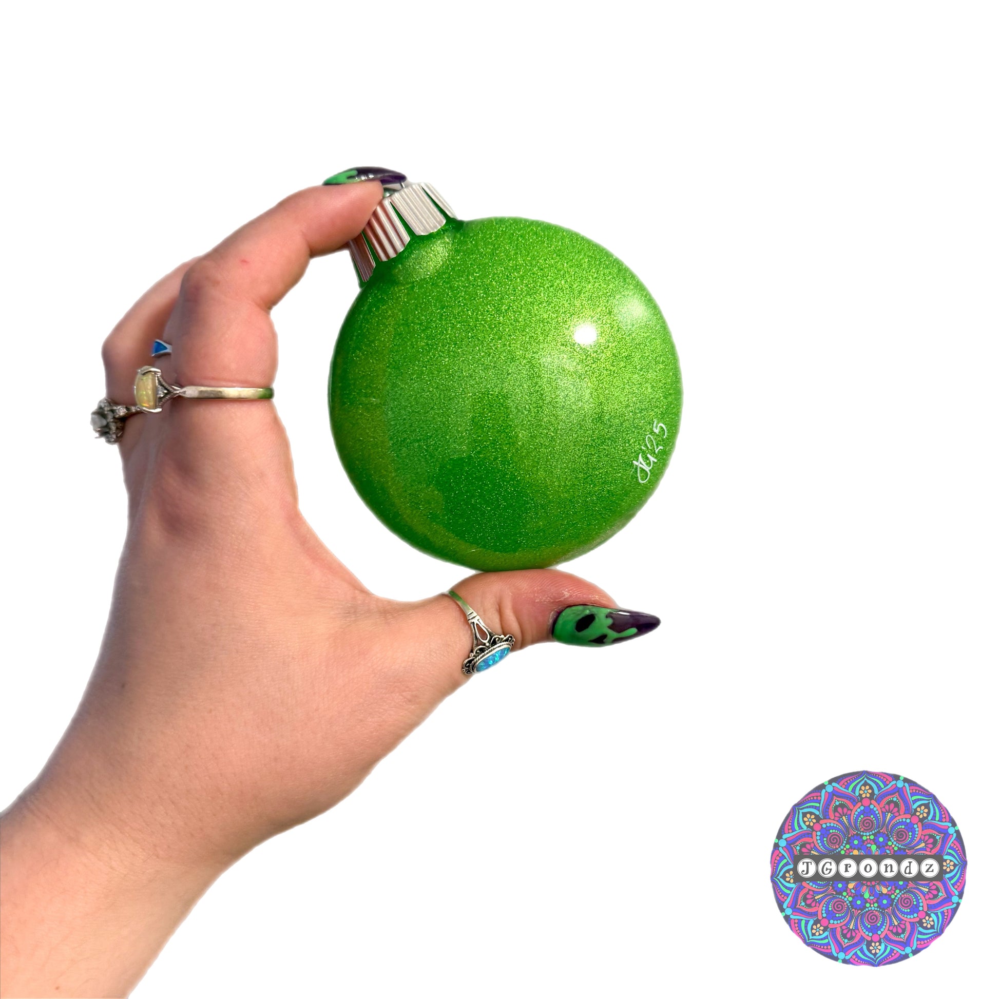 This ornament is glittered on the inside with polycrylic to adhere the glitter to the inside of the bulb.