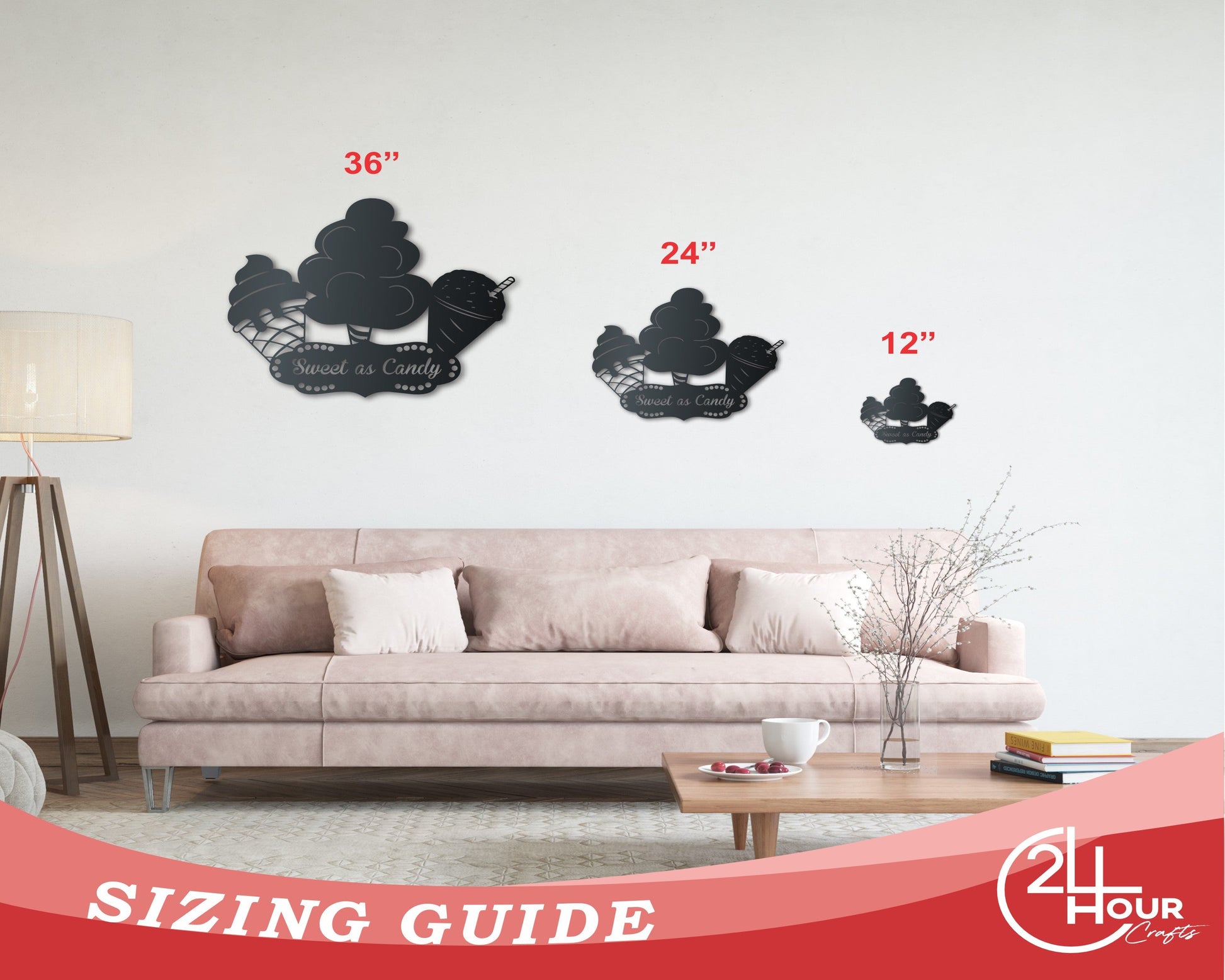 Crafted with meticulous attention to detail, this wall art features a captivating display of cotton candy, ice cream, and snow cones, all beautifully rendered in high-quality metal. The result is a mesmerizing composition that will undoubtedly spark delight and nostalgia in anyone who beholds it.