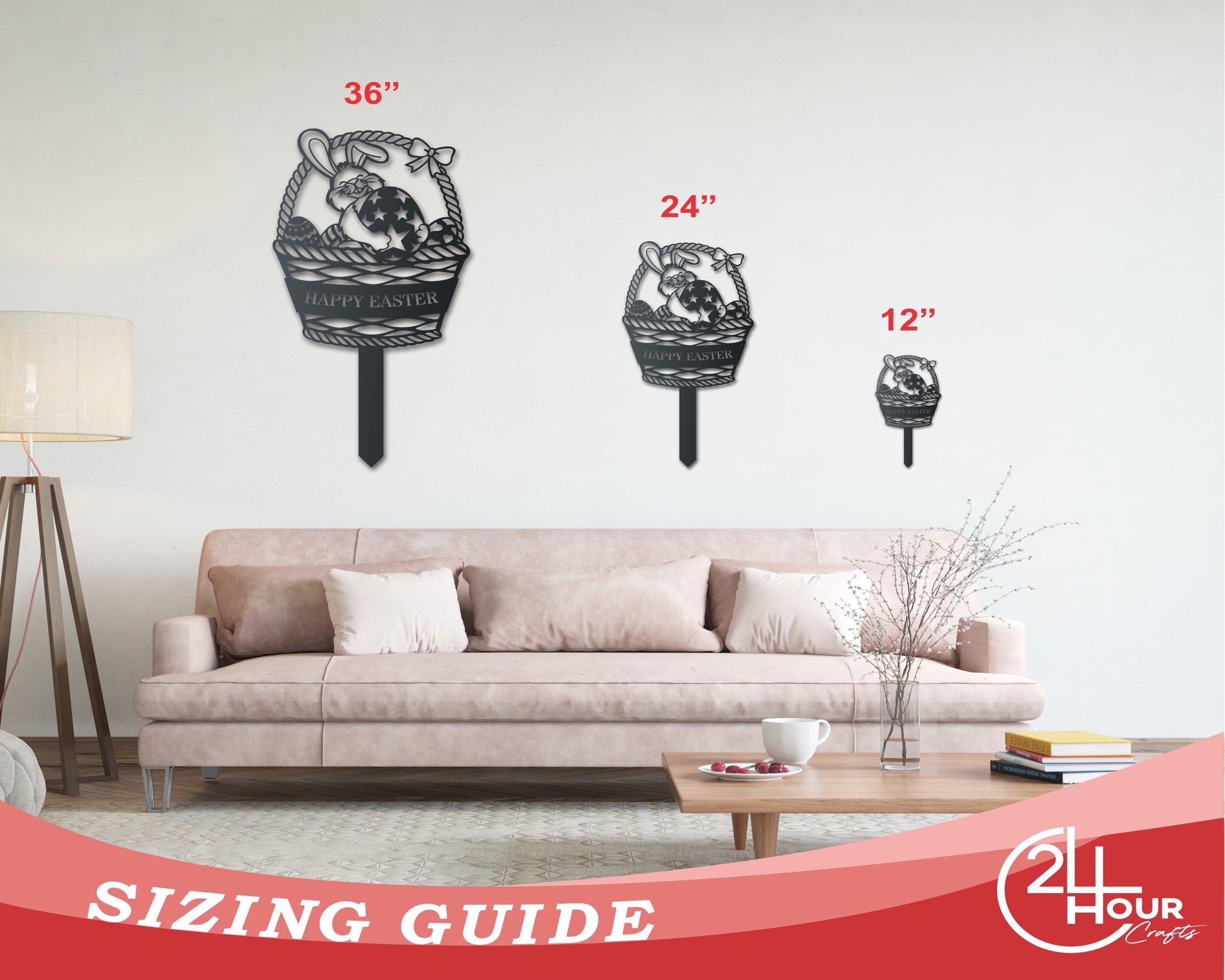 Custom Metal Easter Bunny Basket Garden Stake Wall Art - 14 Color Options