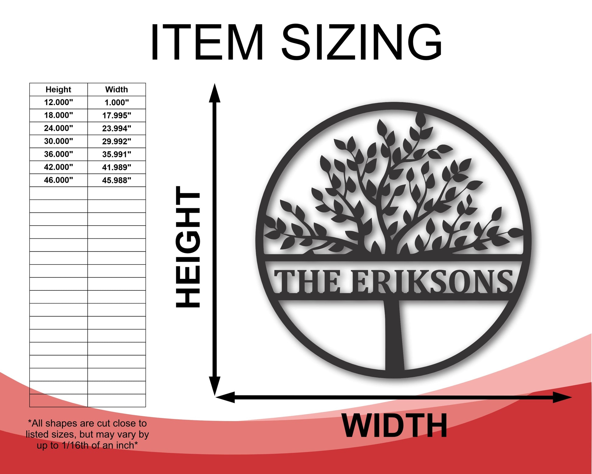 Custom Metal Split Tree Monogram | Personalized Family Name Wall Art | Indoor Outdoor | Up to 46" | Over 20 Color Options |