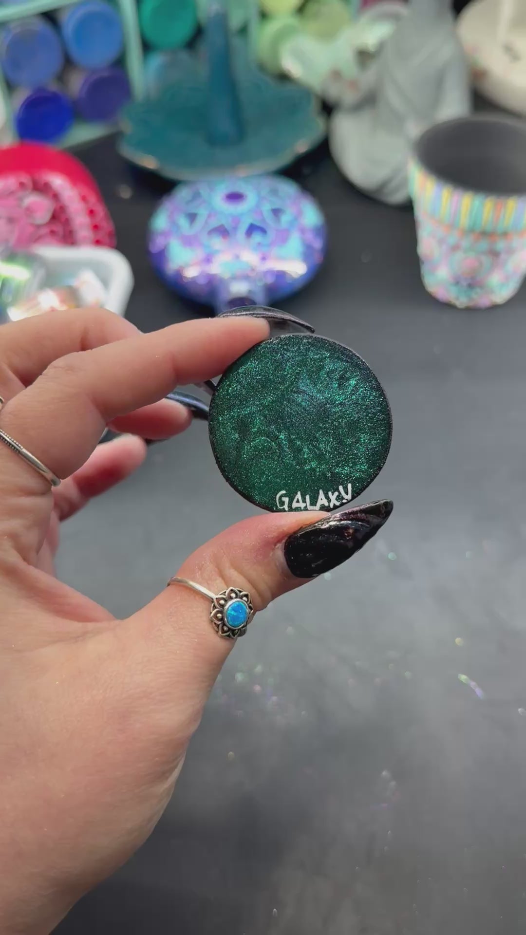 The video shows the pigment powder mixed inside Duraclear high gloss varnish.