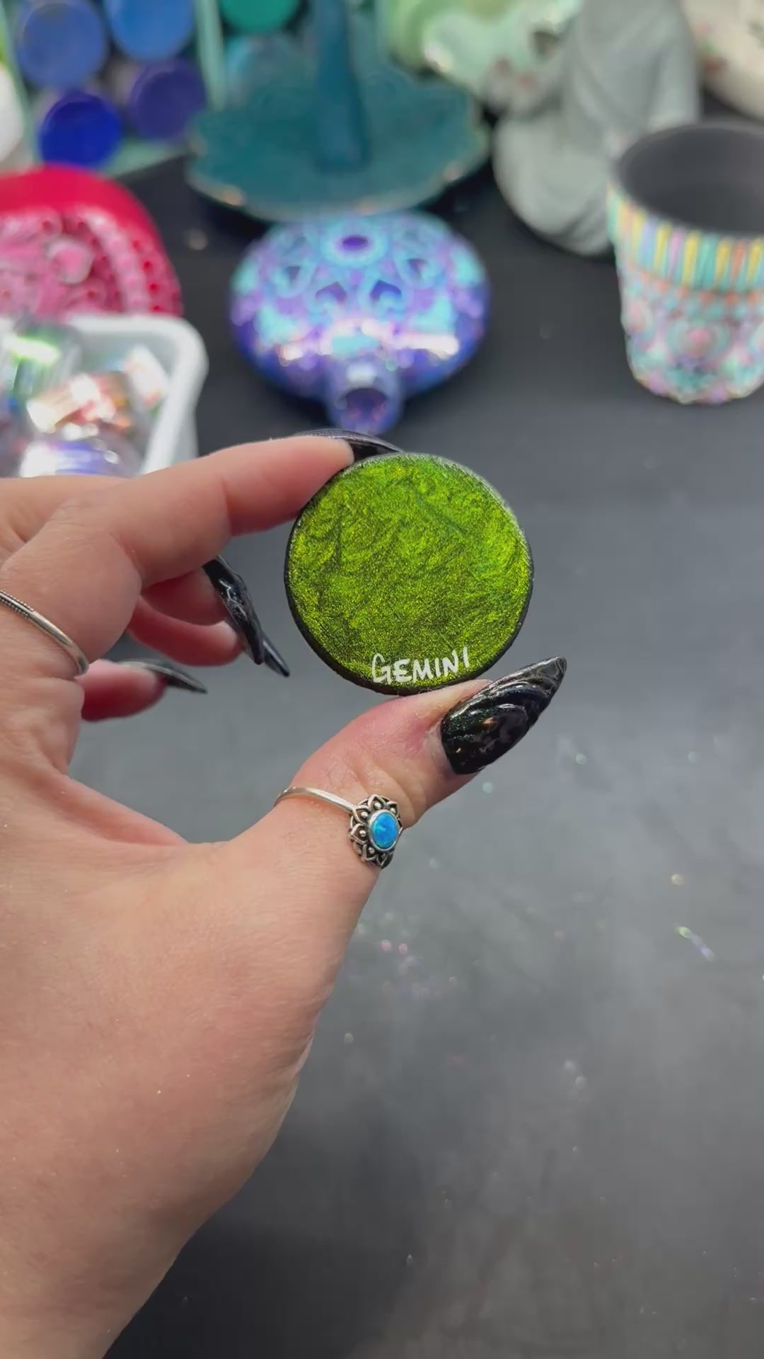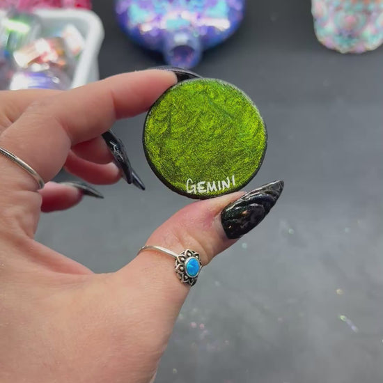 Gemini shifts between a vibrant gold to green with a bit of teal