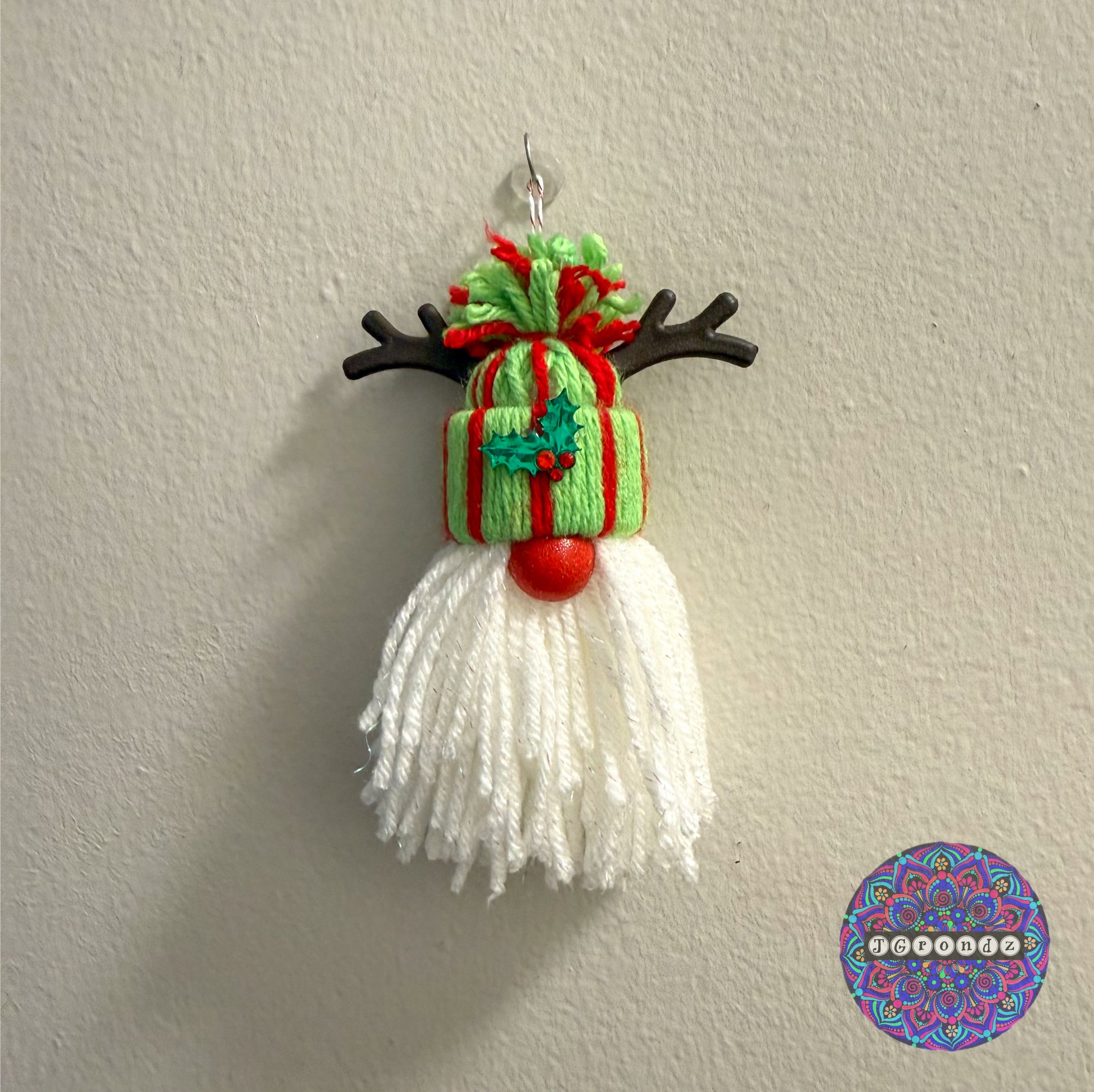 Hand crafted gnome buddy ornament from yarn