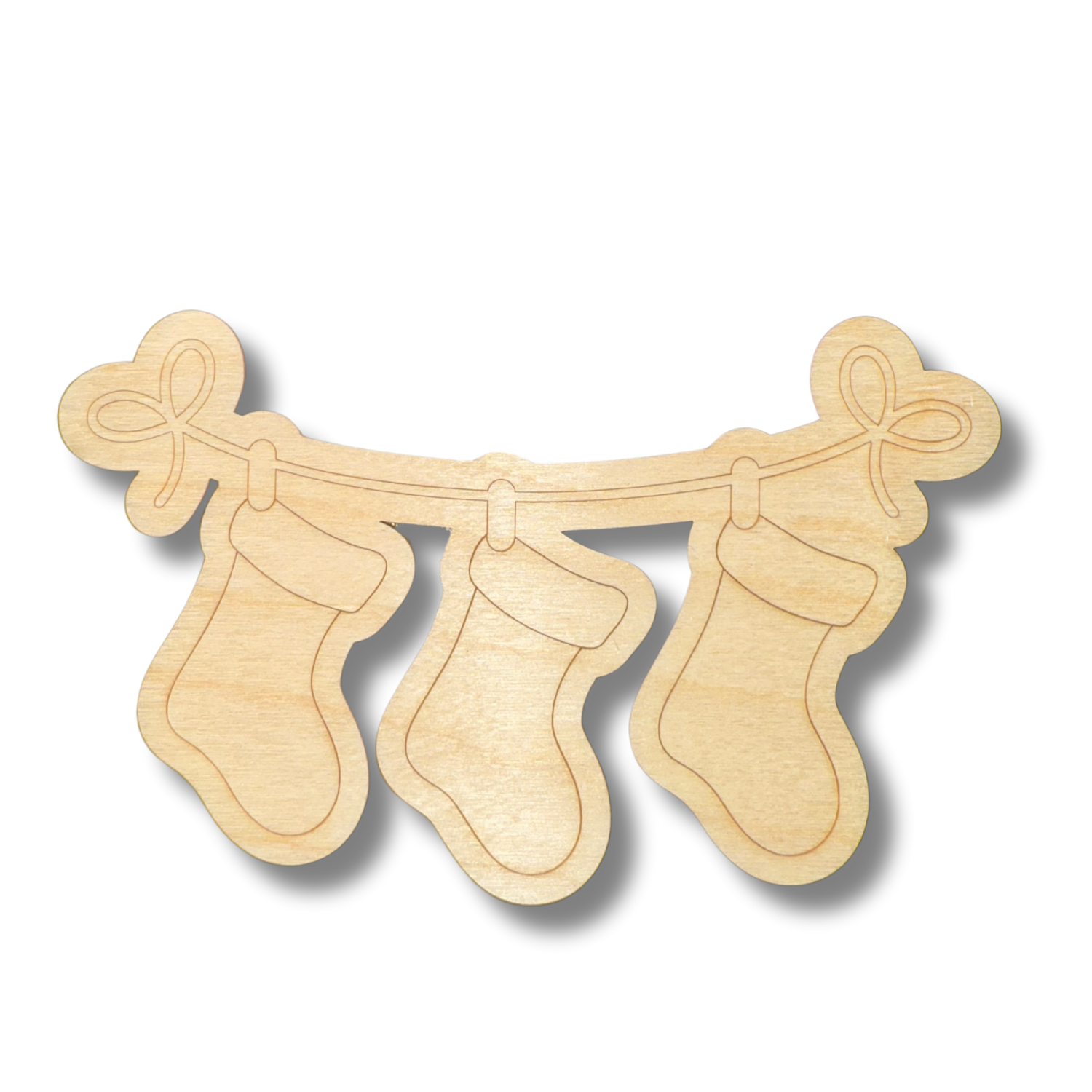Unfinished Wood Etched Hanging Stockings Shape | Paint By Line Crafts | up to 30" DIY