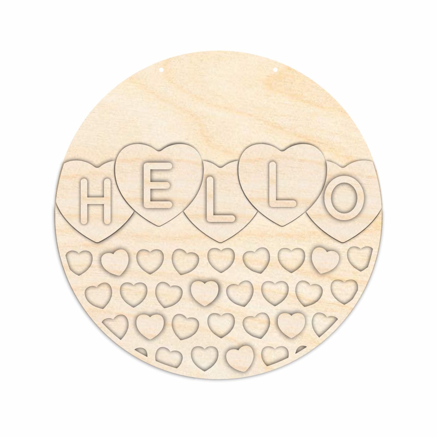 Unfinished Wood Hello Candy Hearts Door Sign Kit | Wood Craft Cutouts | 1/4" Thick |