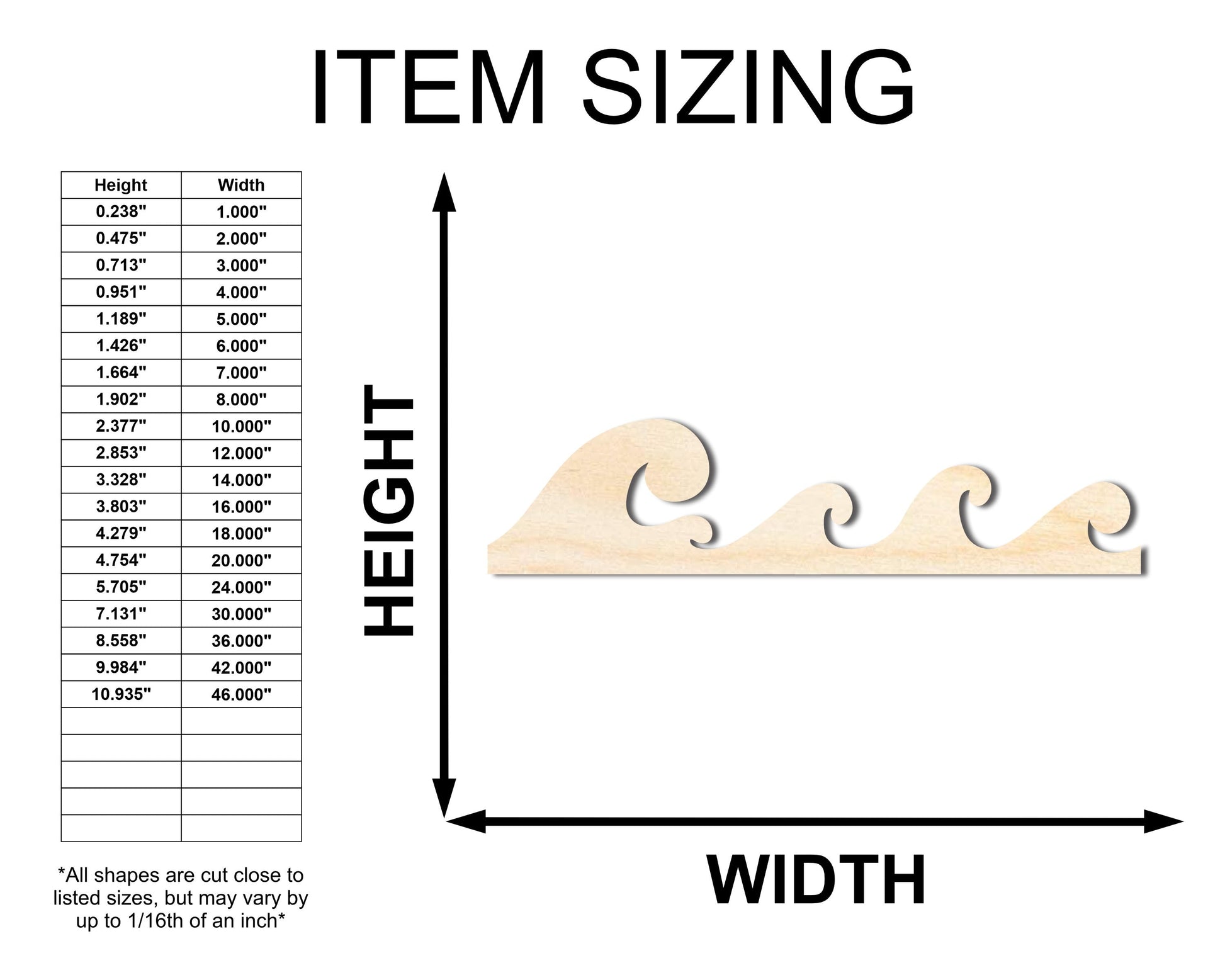 Unfinished Wood Ocean Wave Shape | Craft Cutout | up to 46" DIY