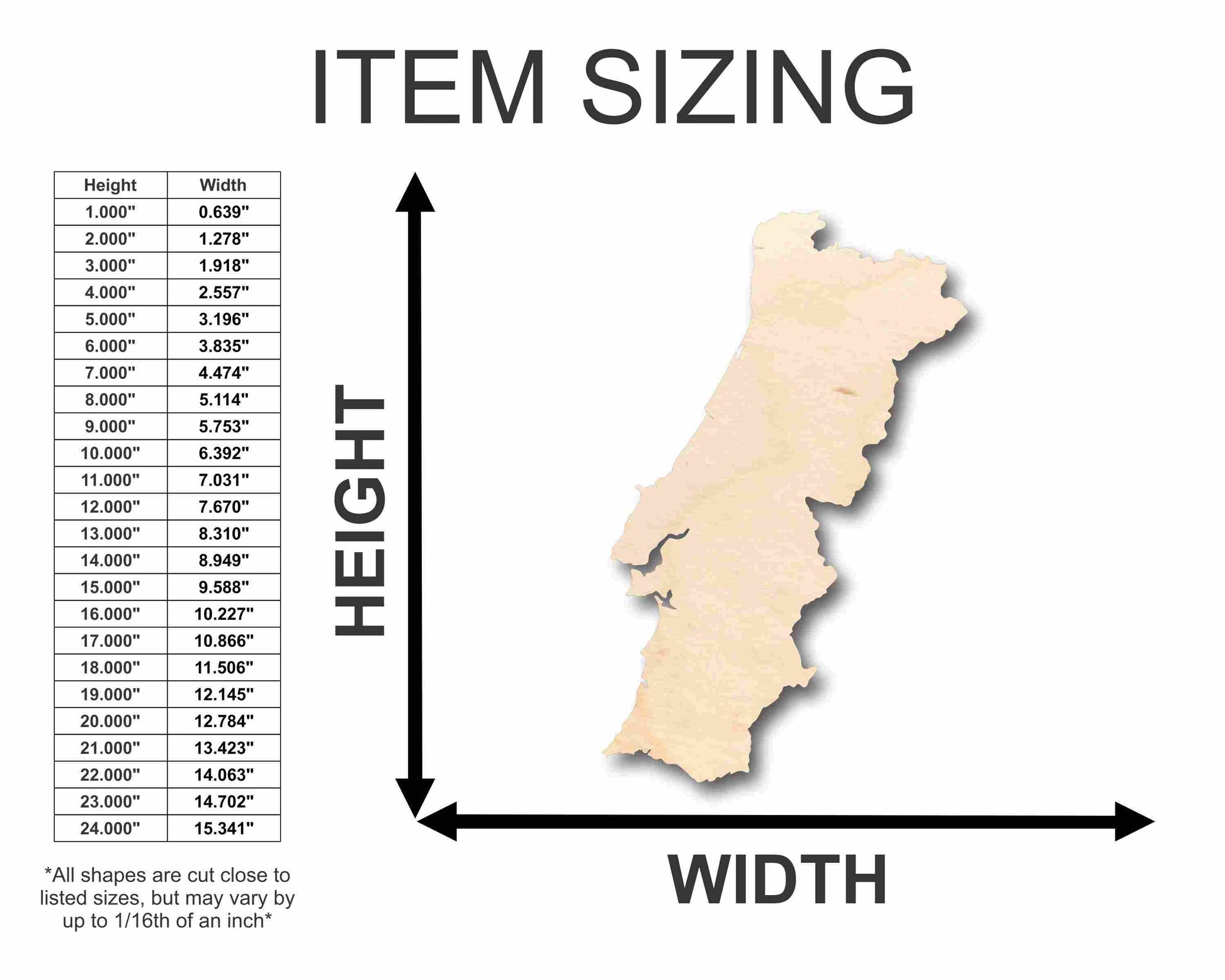 Unfinished wood shapes are available from 3" up to 48" (Some intricate shapes will not be available at smaller sizes)