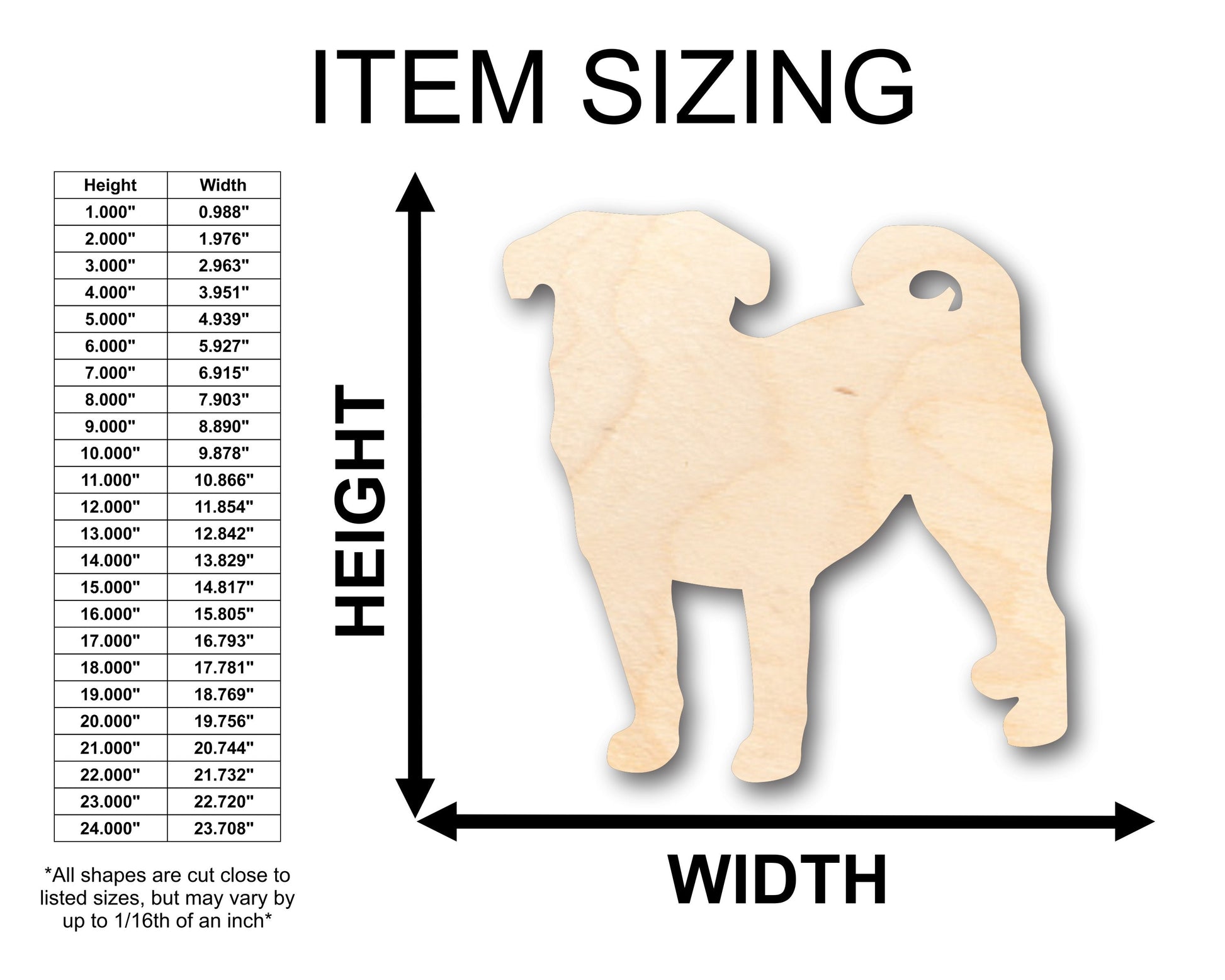 Unfinished Wood Pug Dog Shape - Craft - up to 46" DIY