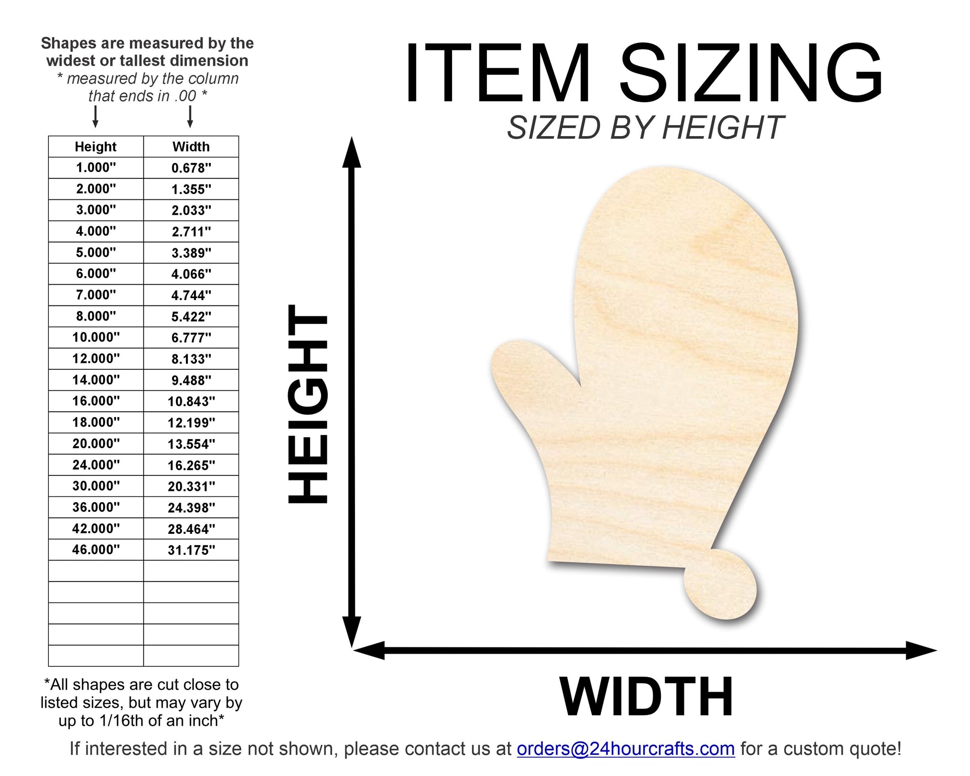 Unfinished Wood Right Oven Mit Shape | DIY Craft Cutout | up to 46" DIY