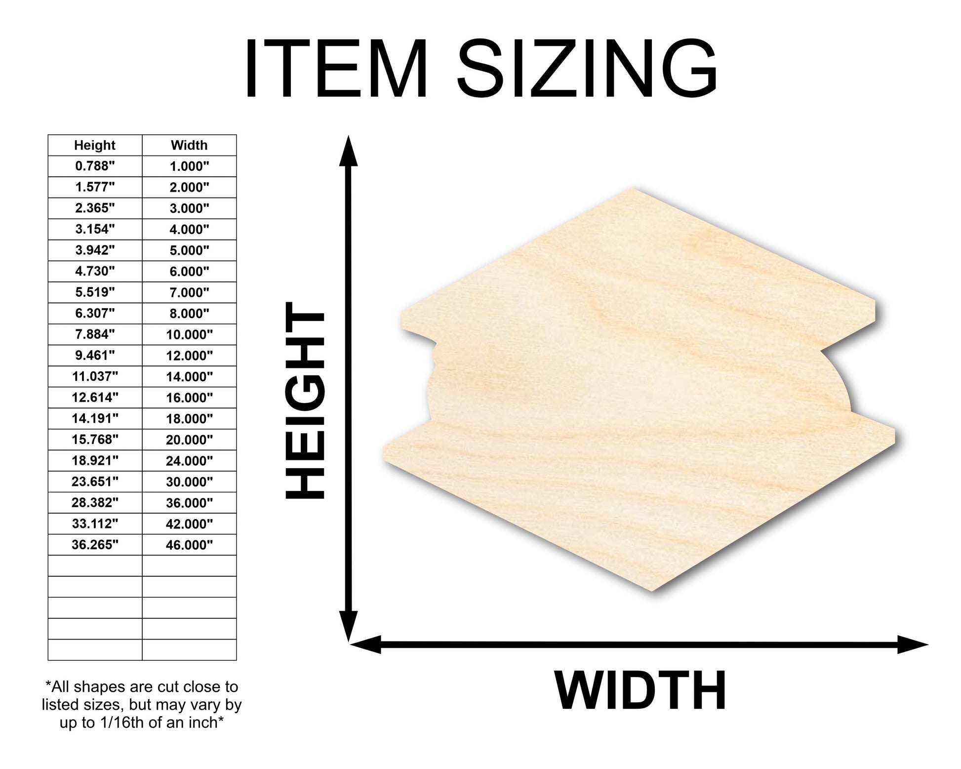 These Unfinished wood crafts are cut from 1/8 (3mm), 1/4 (6mm) or 1/2 (12mm) inch (MM) cabinet grade Baltic birch plywood. If you're interested in another thickness please message us!