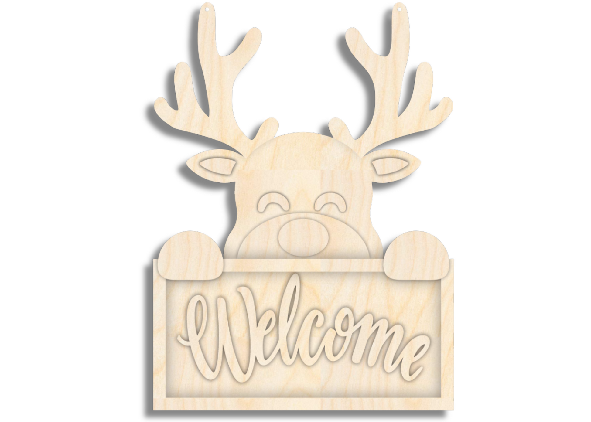 Unfinished Wood Welcome Reindeer Door Sign Kit | Wood Craft Cutouts | 1/4" Thick |