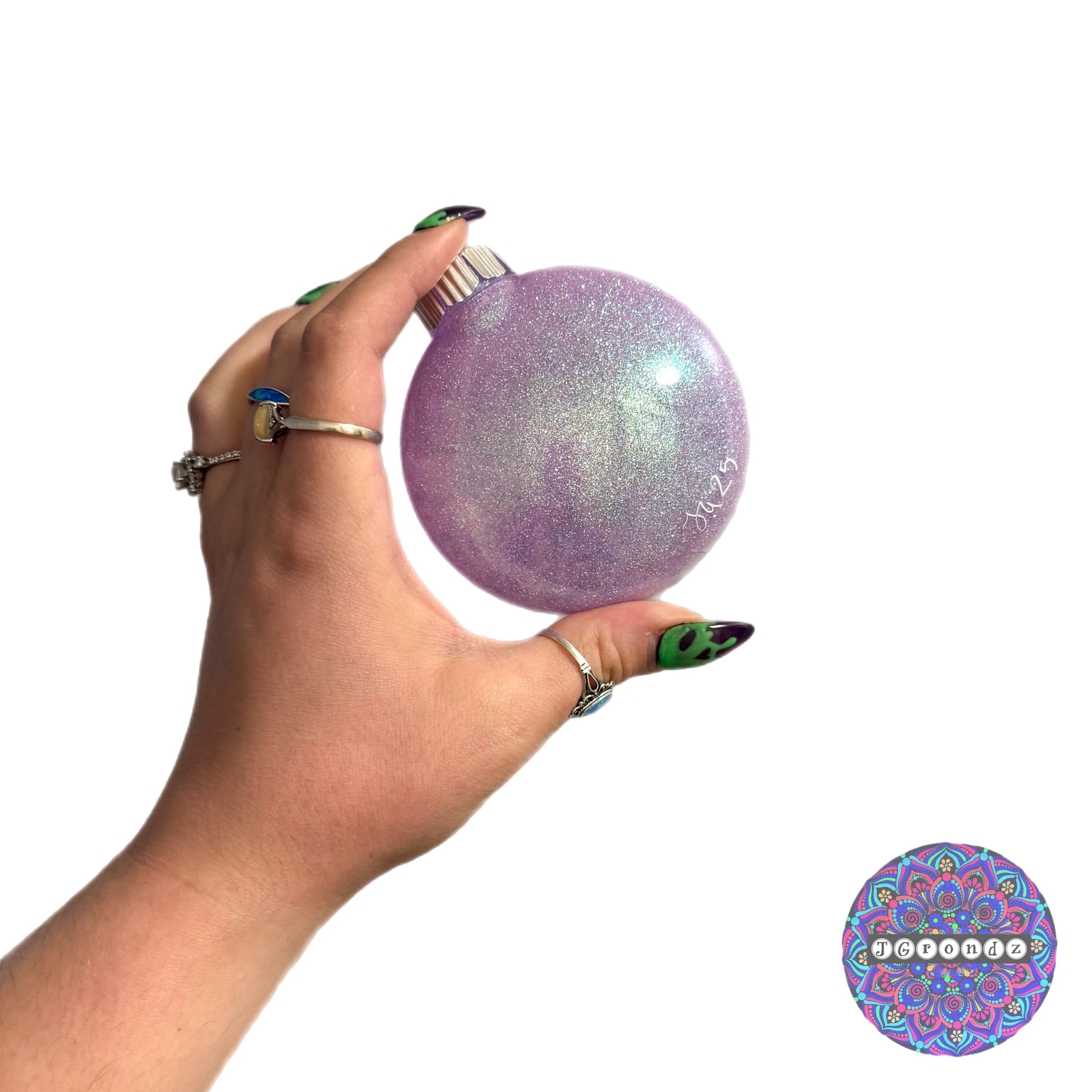 This ornament is glittered on the inside with polycrylic to adhere the glitter to the inside of the bulb.