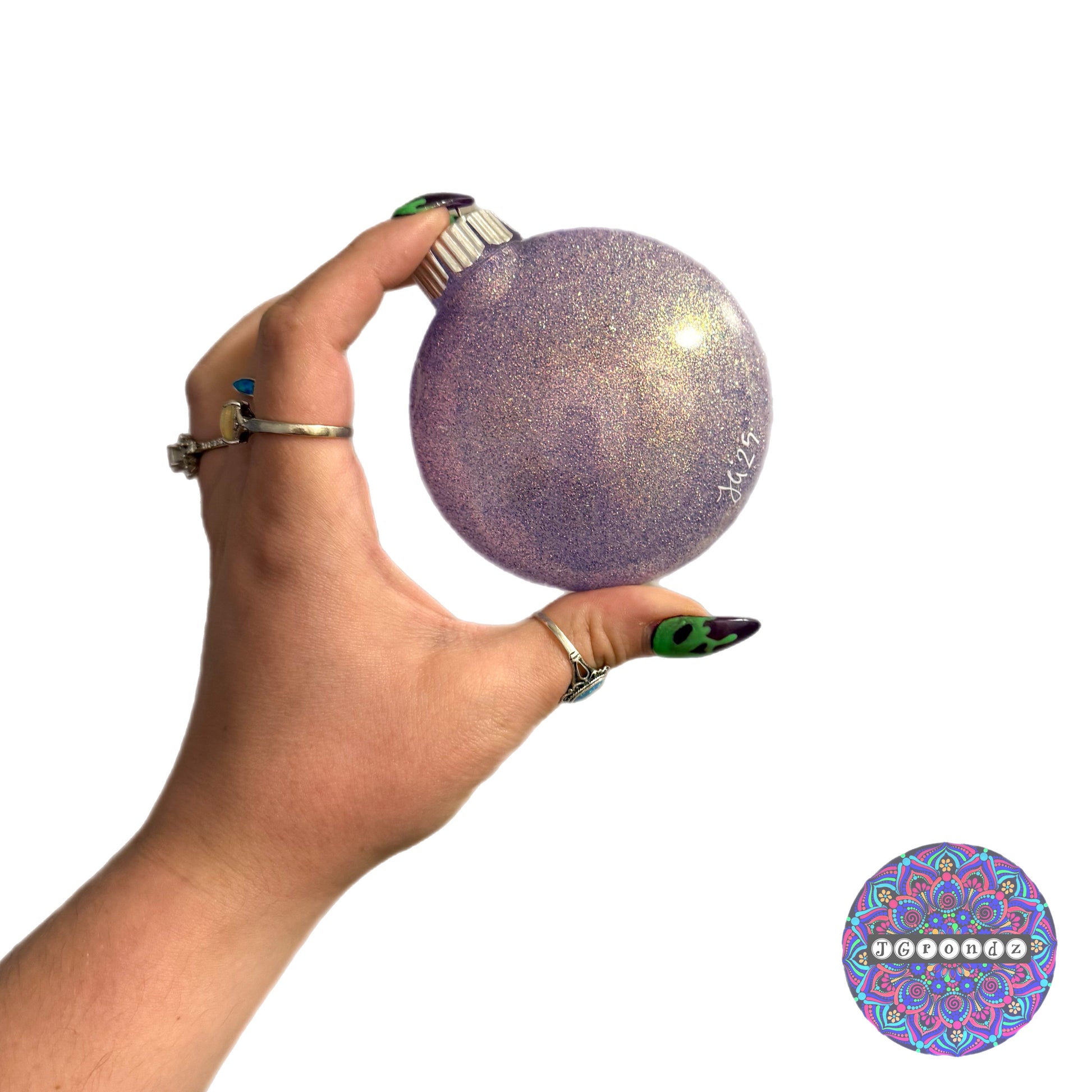 This ornament is glittered on the inside with polycrylic to adhere the glitter to the inside of the bulb.