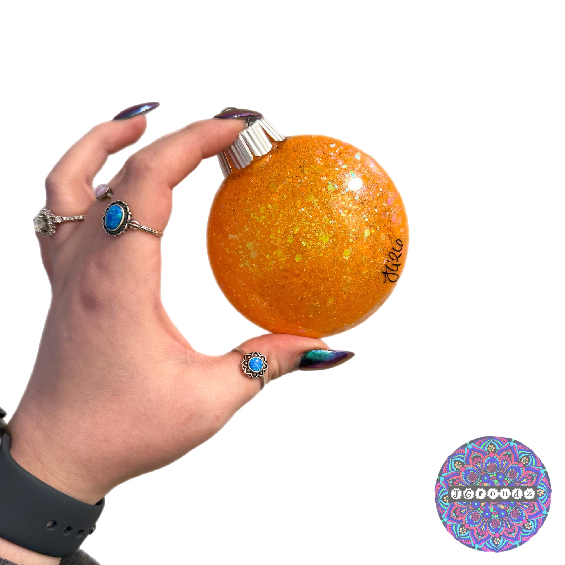 This ornament is glittered on the inside with polycrylic to adhere the glitter to the inside of the bulb.