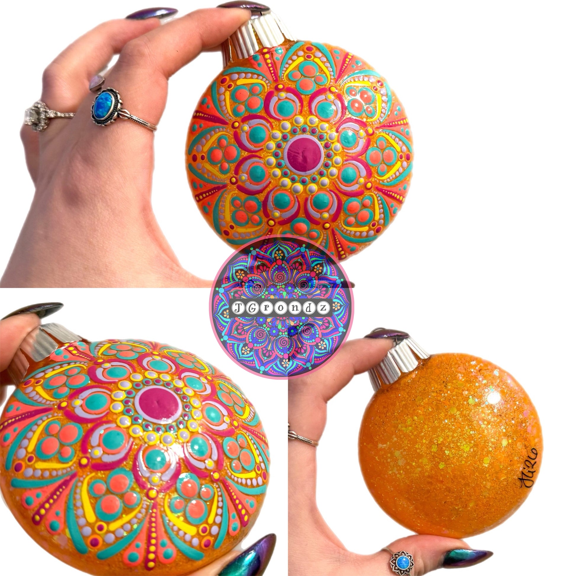 A mandala dot art design is hand painted on the front and sealed with a high gloss sealant to protect the design!