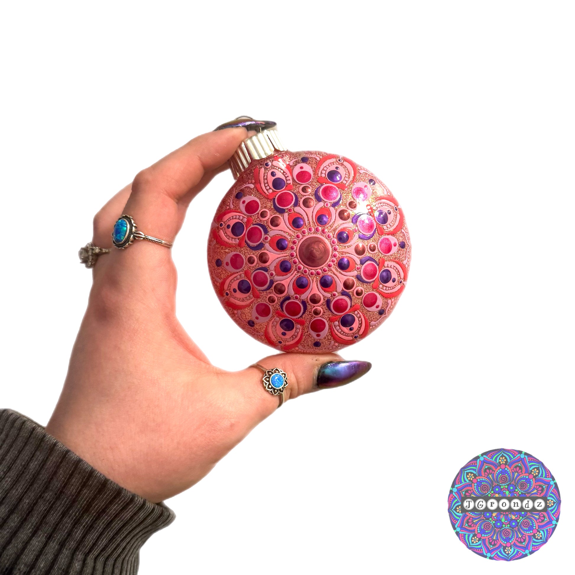 A mandala dot art design is hand painted on the front and sealed with a high gloss sealant to protect the design!