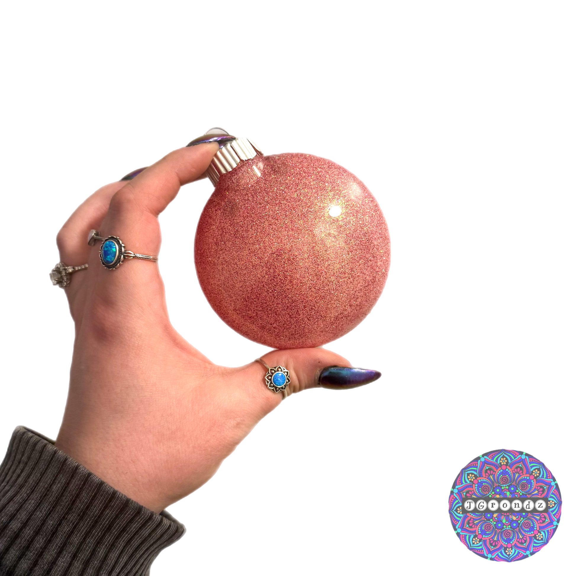 This ornament is glittered on the inside with polycrylic to adhere the glitter to the inside of the bulb.