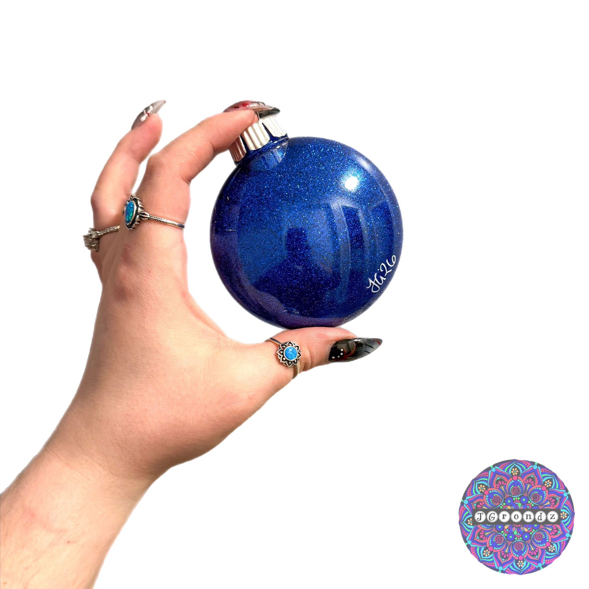 This ornament is glittered on the inside with polycrylic to adhere the glitter to the inside of the bulb.