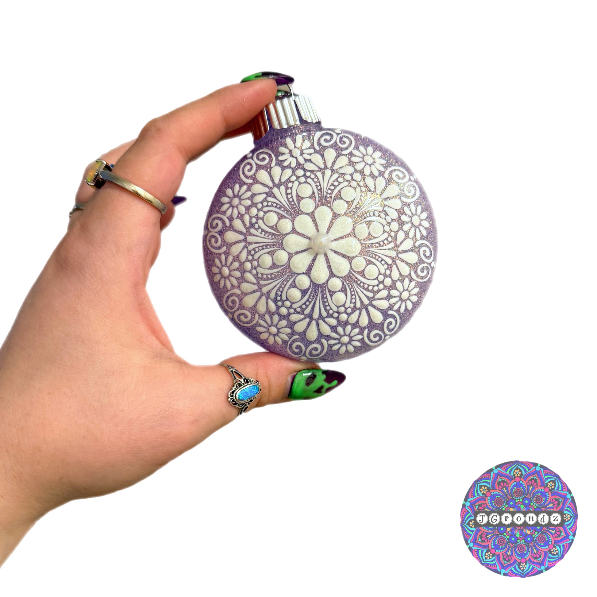 A mandala dot art design is hand painted on the front and sealed with a high gloss sealant to protect the design!
