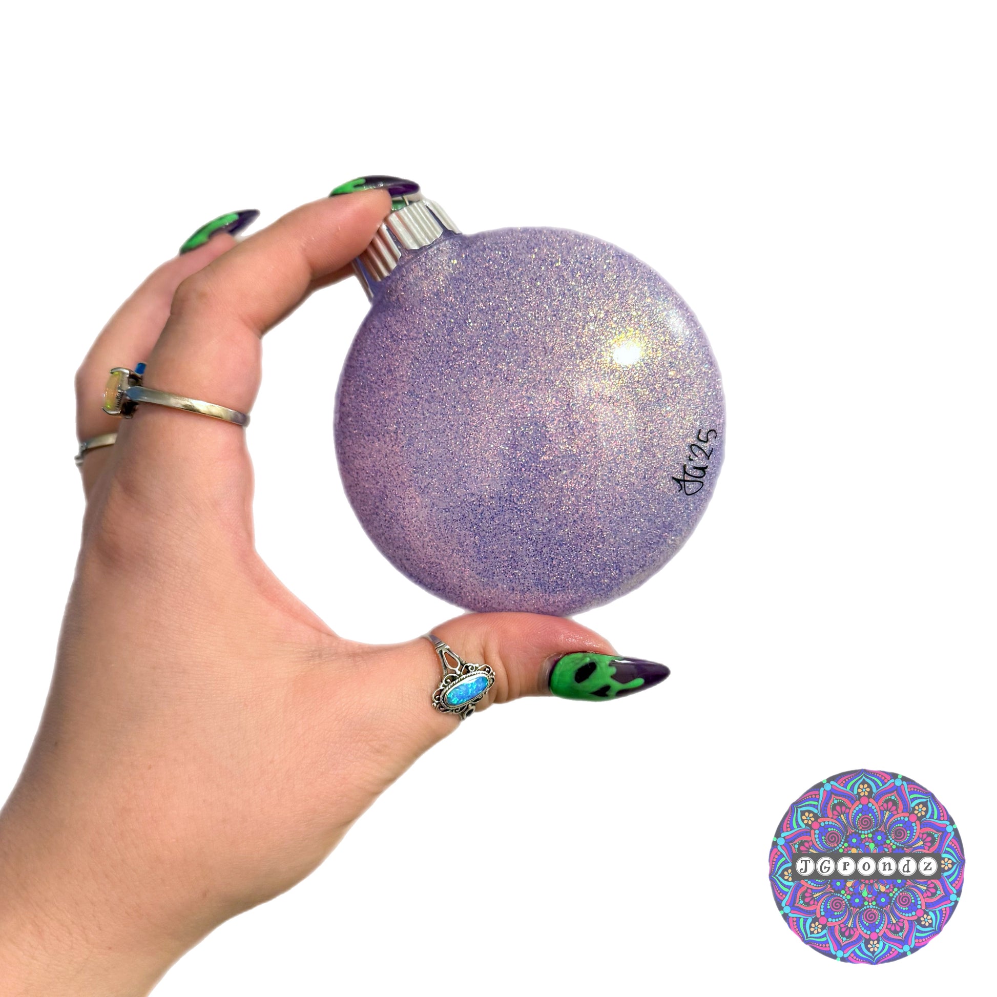 This ornament is glittered on the inside with polycrylic to adhere the glitter to the inside of the bulb.