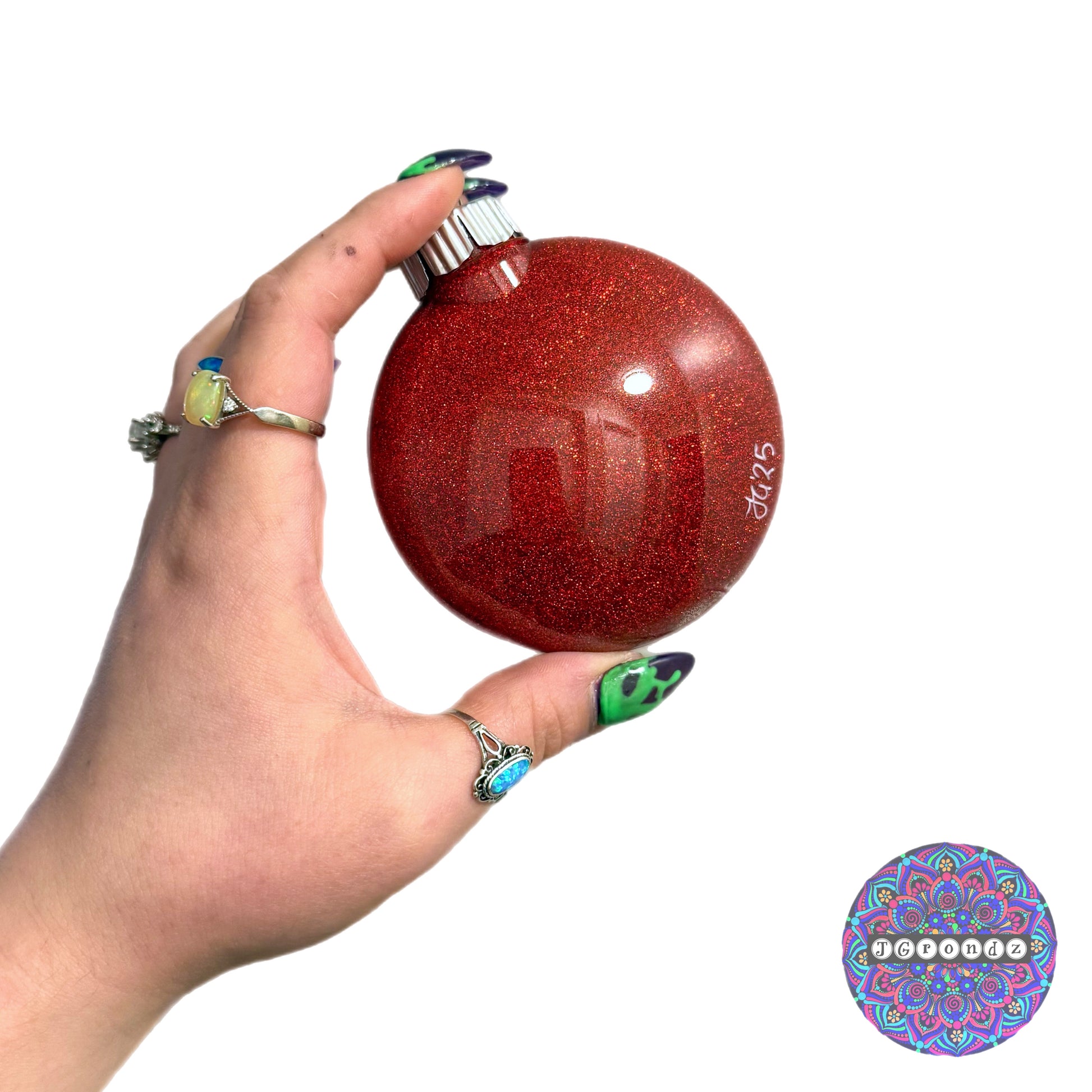 This ornament is glittered on the inside with polycrylic to adhere the glitter to the inside of the bulb.