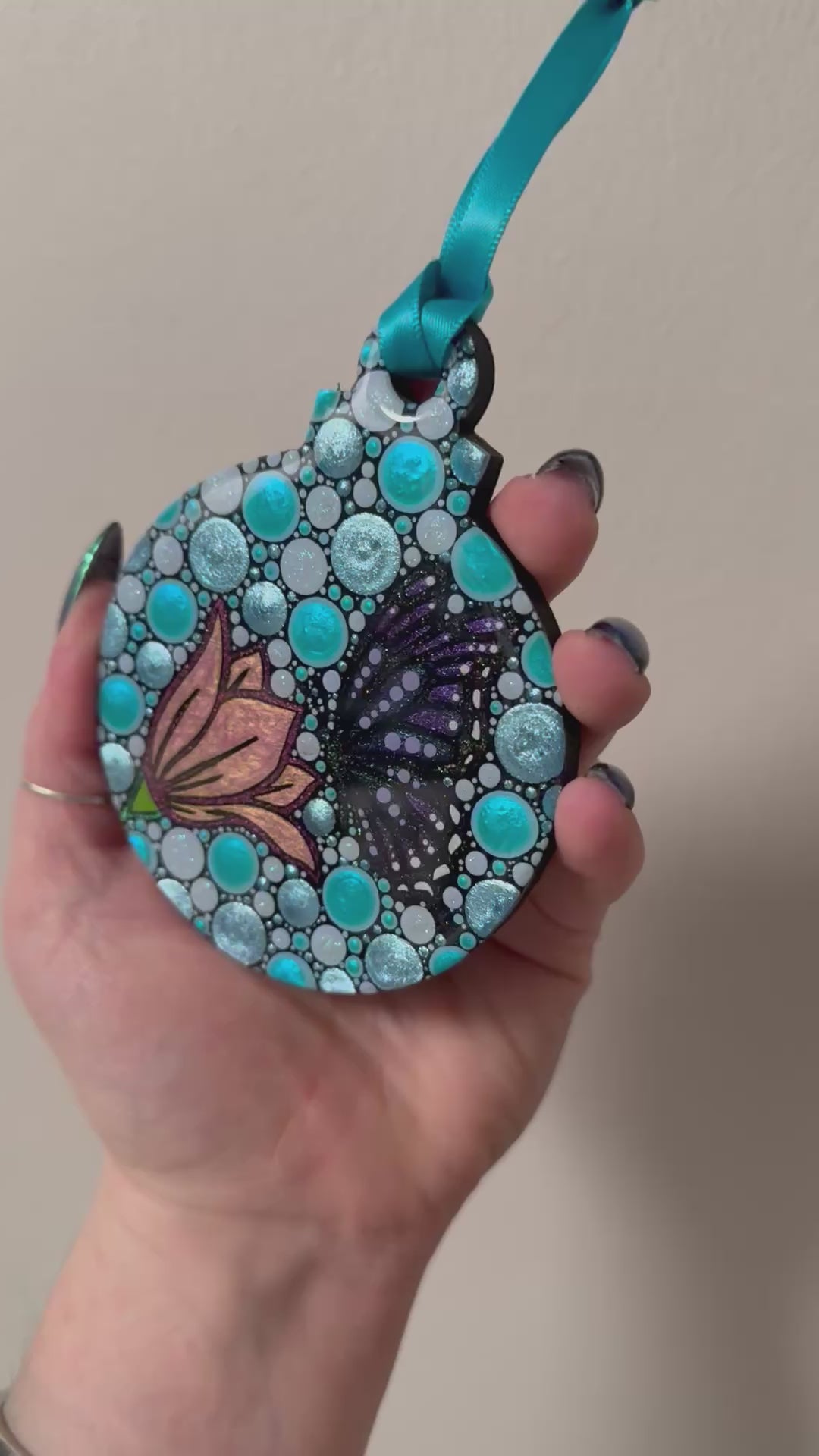 Hung with matching ribbon!