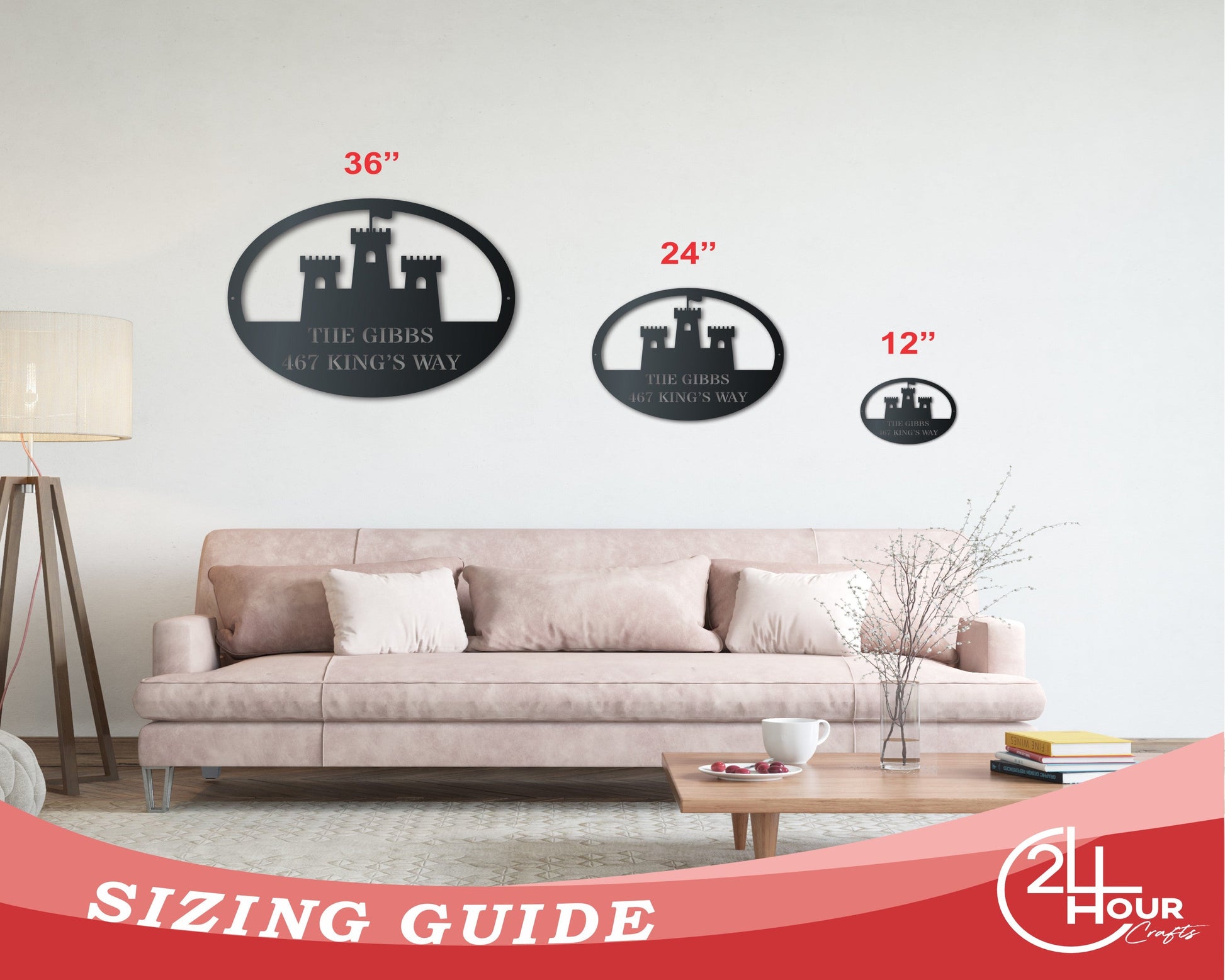 Whether you're seeking a royal addition to your home or a thoughtful housewarming gift, our Custom Metal Castle Fort Address Wall Art is a must-have.