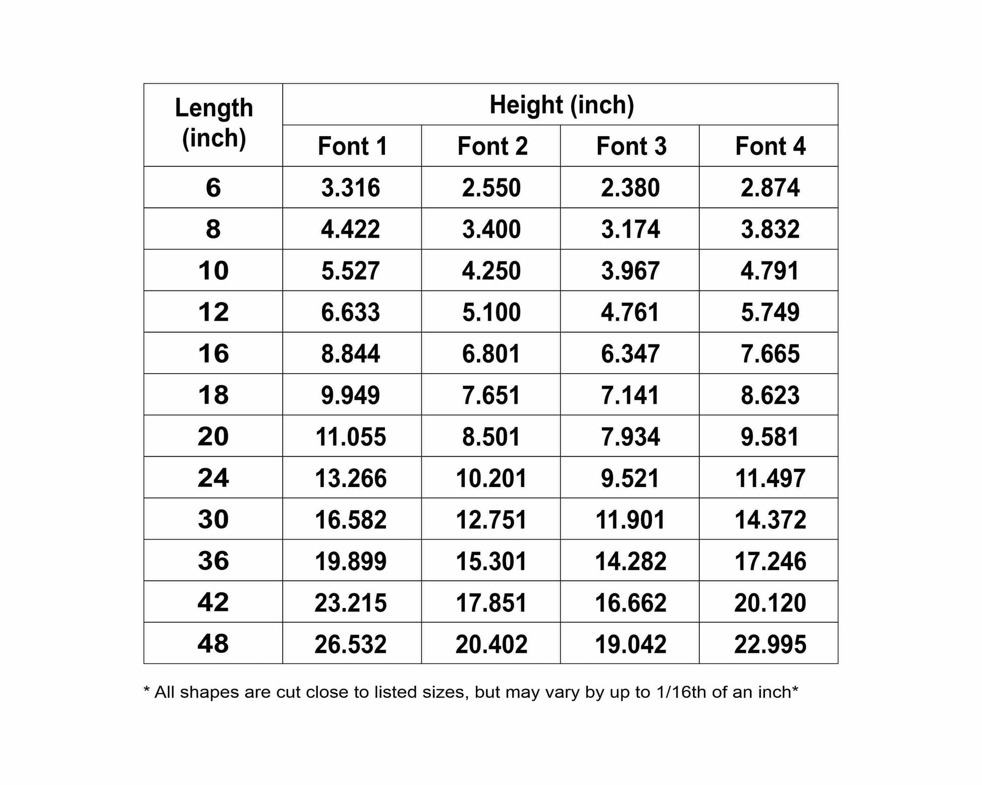 They are available from 8" up to 48"