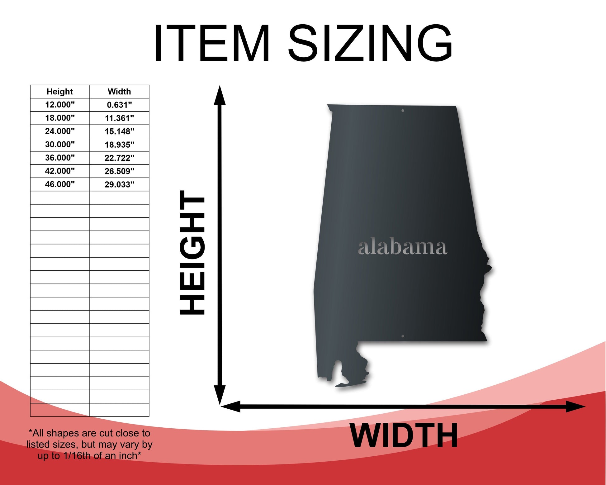 Metal Alabama Wall Art | Custom Metal US State Sign | Indoor Outdoor | Up to 46" | Over 20 Color Options