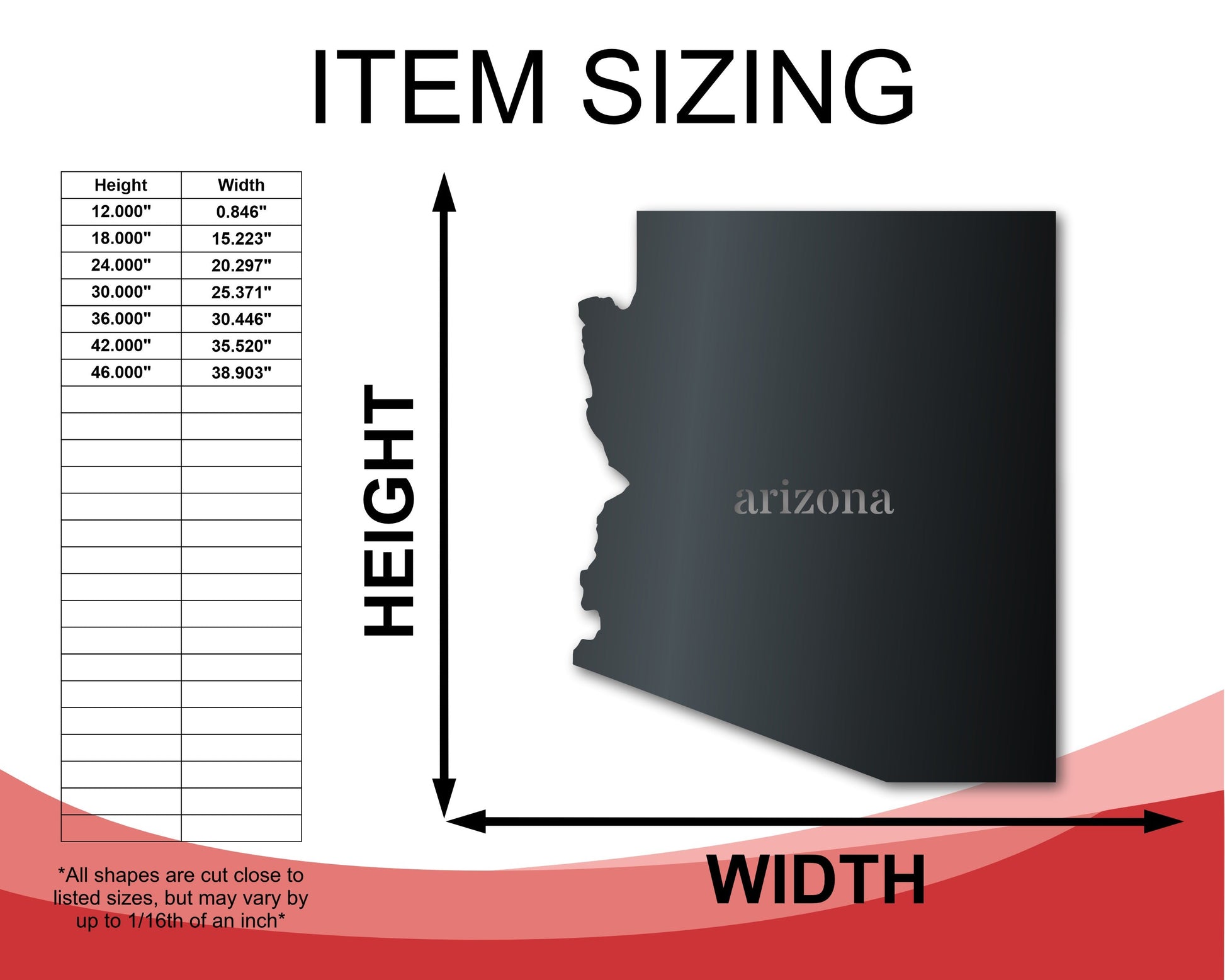 Metal Arizona Wall Art | Custom Metal US State Sign | Indoor Outdoor | Up to 46" | Over 20 Color Options