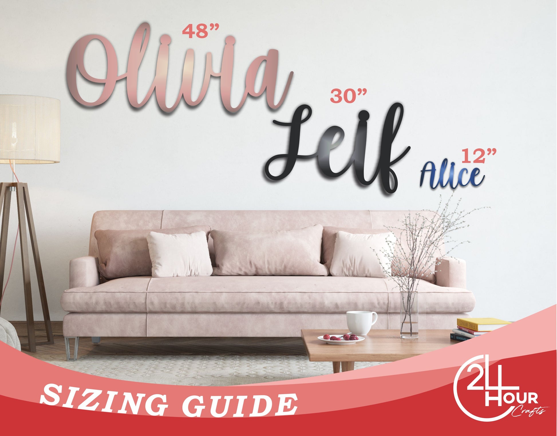 Available in sizes ranging from 12" up to 46", you can find the perfect dimensions to suit your space and make a statement. Whether it's for your kids' room or any other area of your home, this custom script name font sign adds a touch of elegance and personalization.