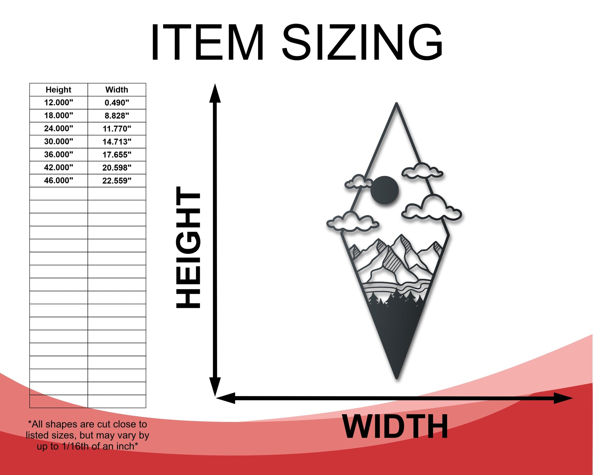 Metal Diamond Mountain Clouds Wall Art | Indoor Outdoor | Up to 46" | Over 20 Color Options