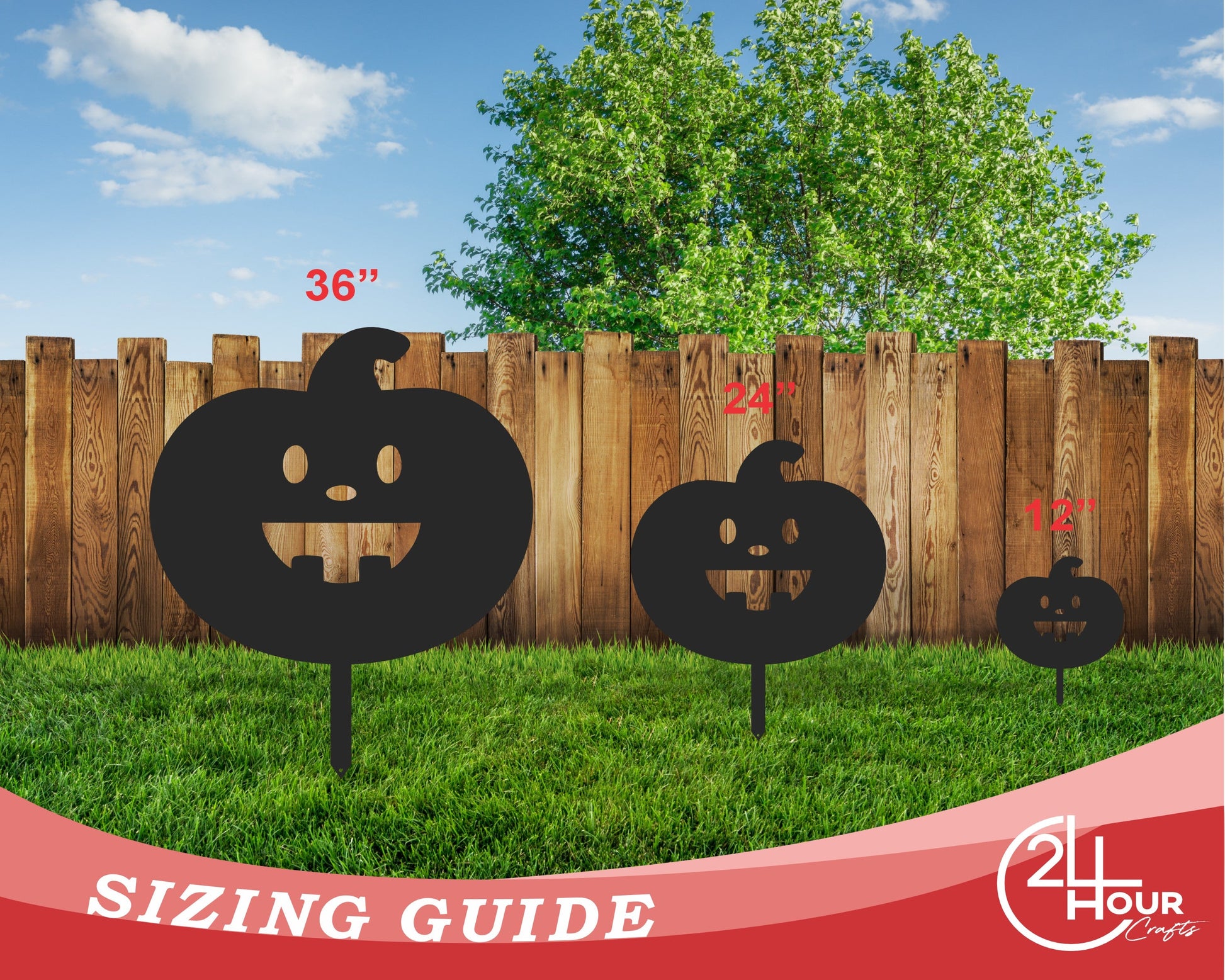 Metal Halloween Pumpkin Garden Stakes | Set of 3 | Up to 46" | Over 20 Color Options