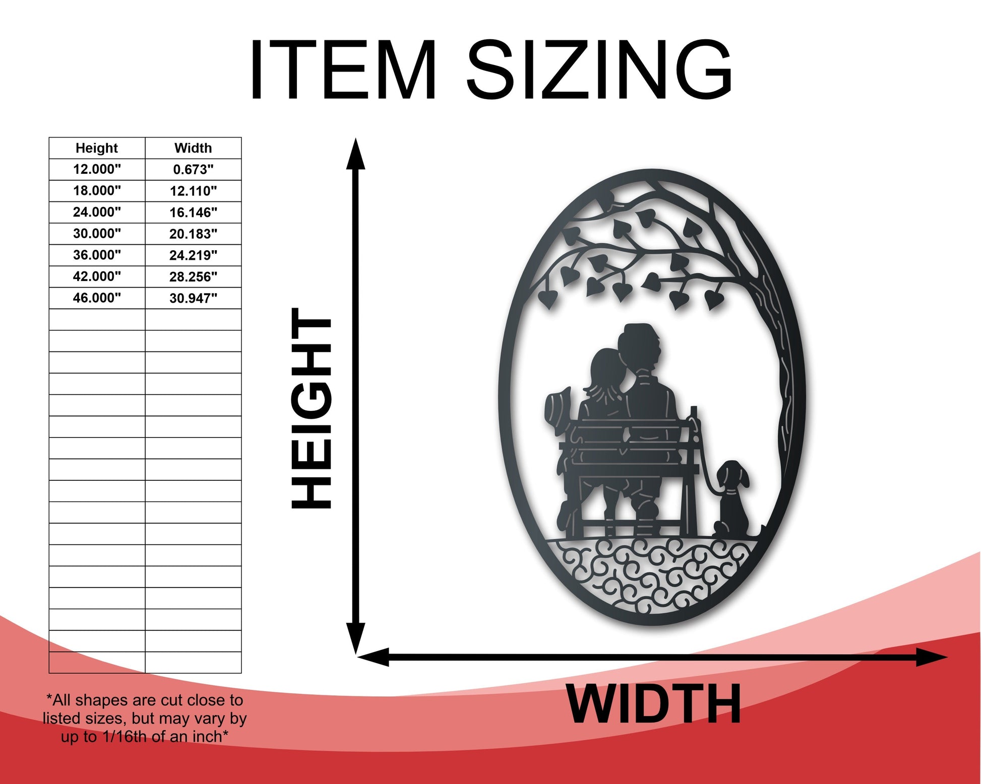 This metal sign is made from 16 gauge steel and powder coated to last a lifetime. Sizes range from 12 inches up to 46 inches.