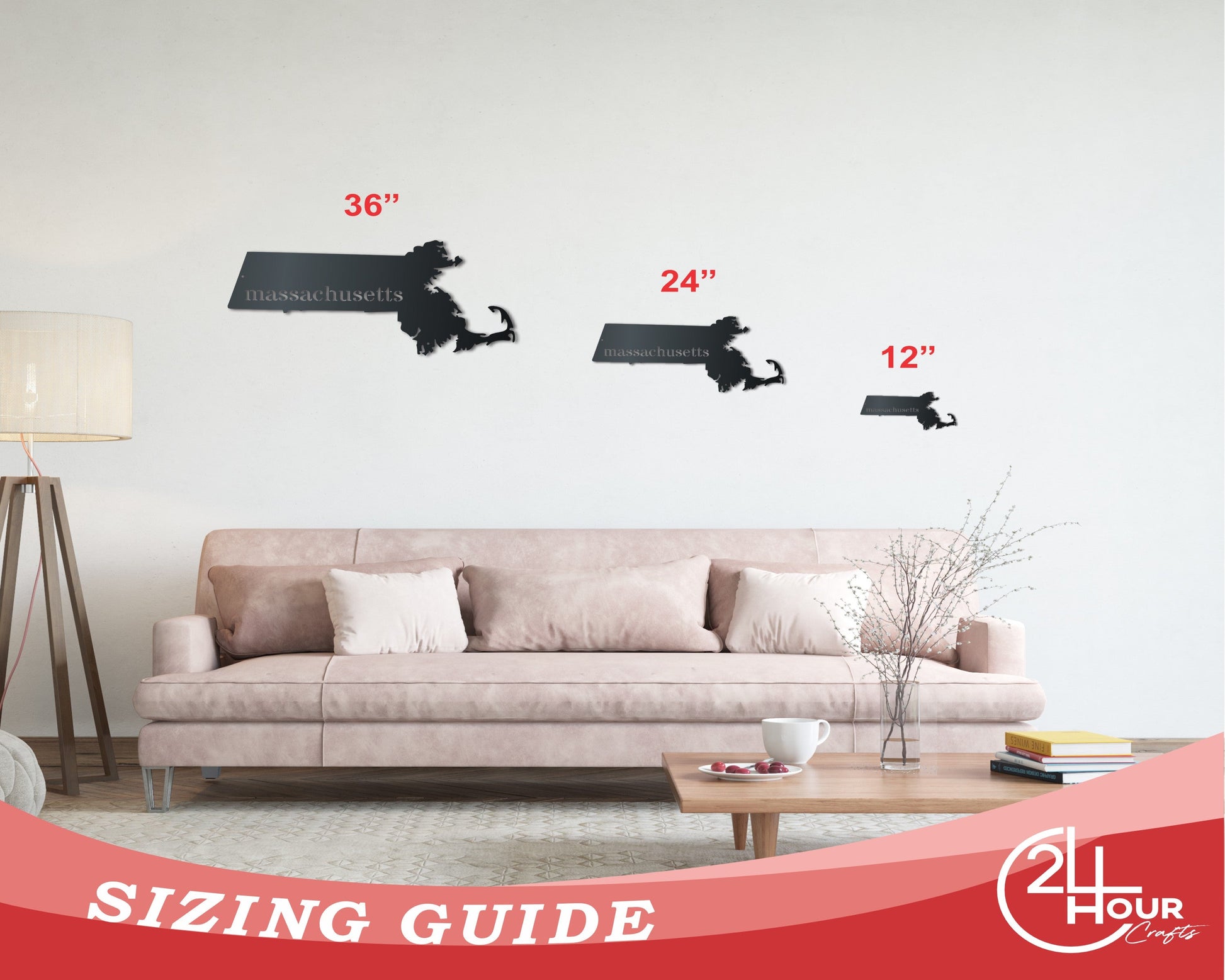 Metal Massachusetts Wall Art - Custom Metal US State Sign - 14 Color Options