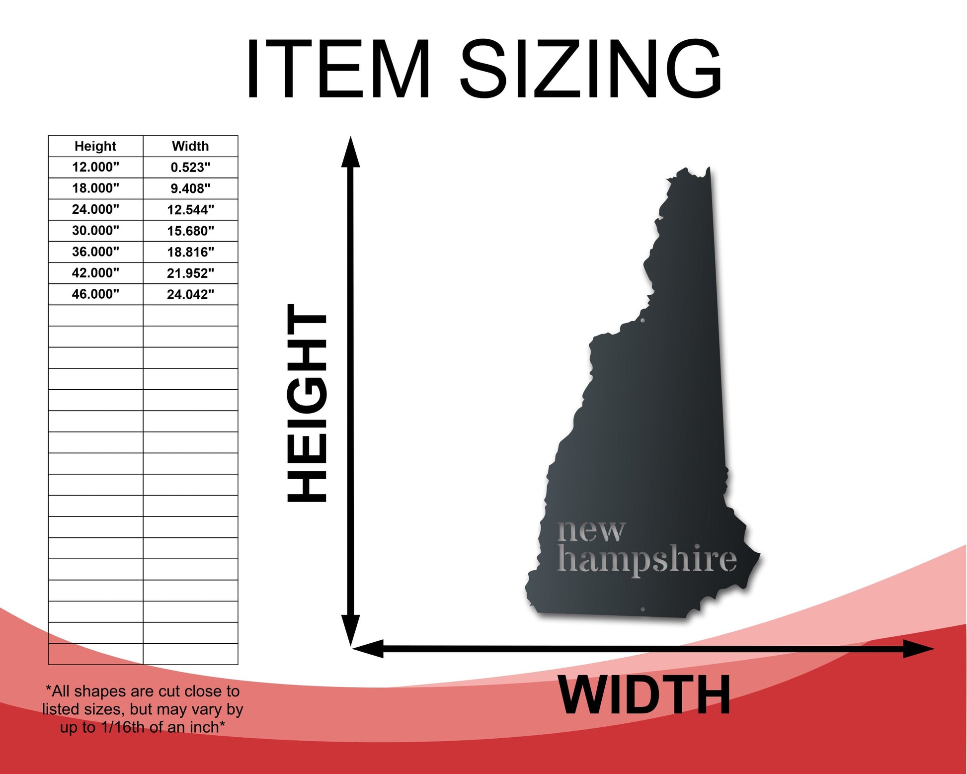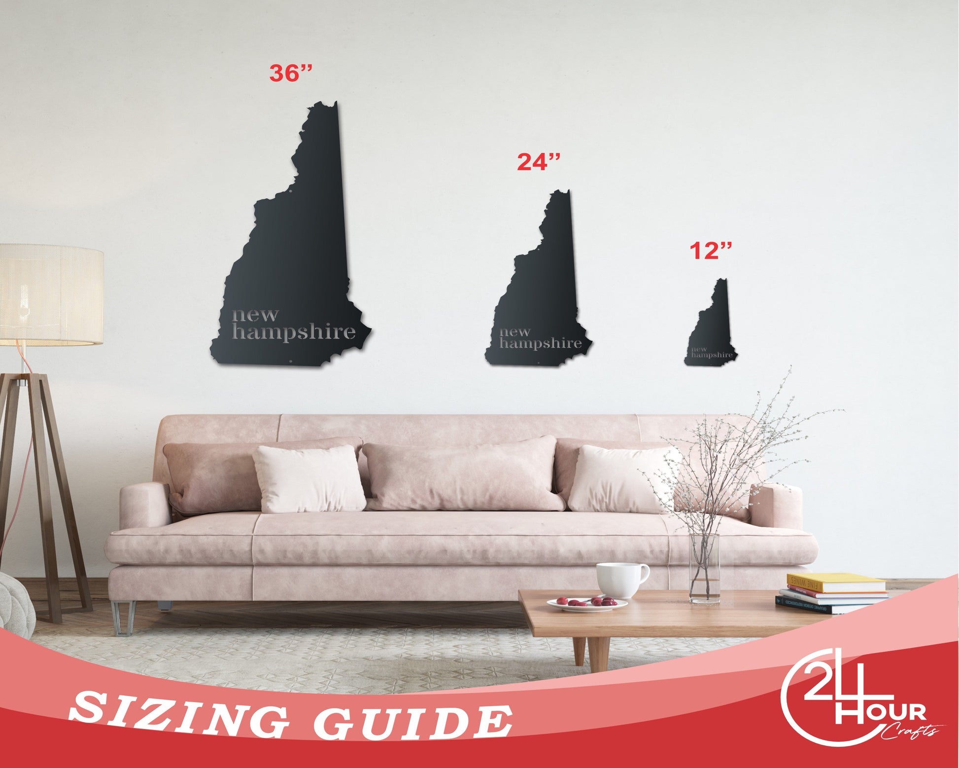 Metal New Hampshire Wall Art - Custom Metal US State Sign - 14 Color Options