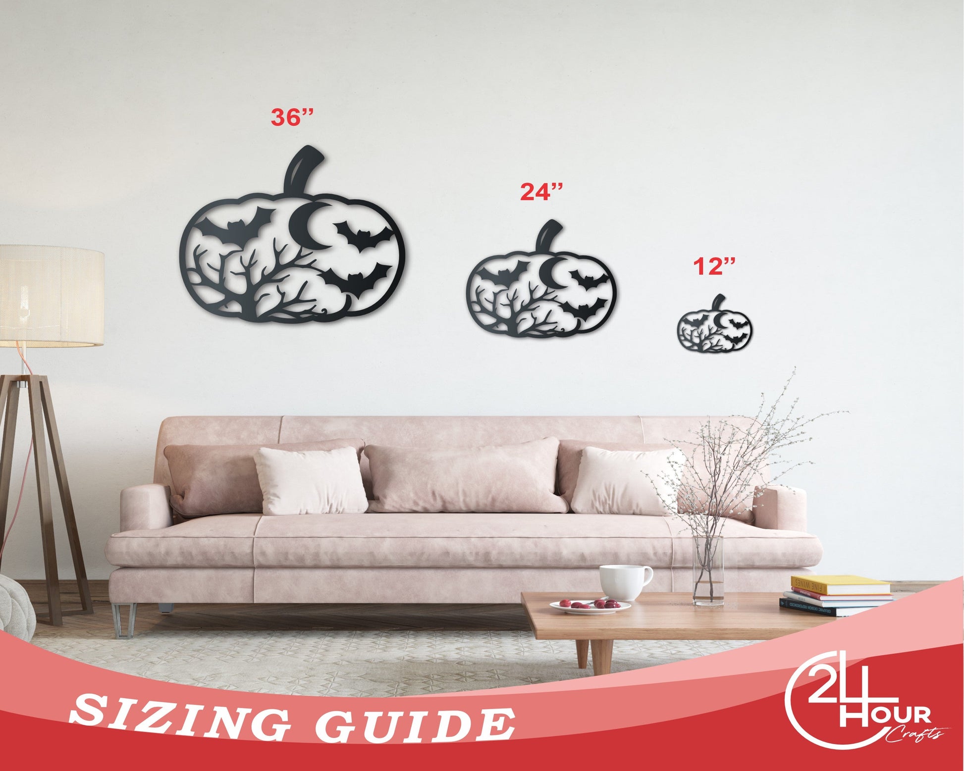 Metal Pumpkin Bats Wall Art | Halloween | Indoor Outdoor | Up to 36" | Over 20 Color Options