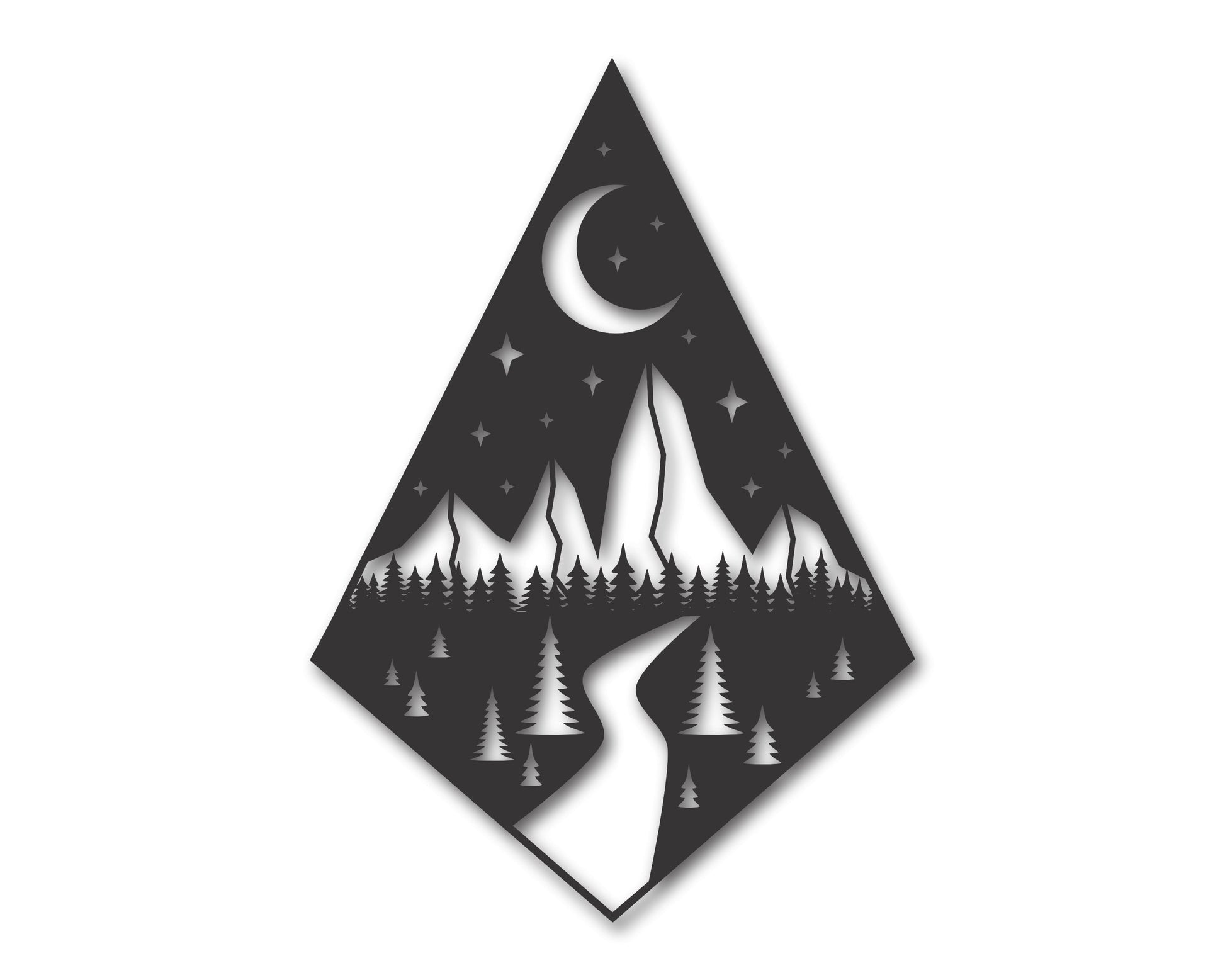 Incorporate clean lines and the love of outdoors with this piece in your home! Nighttime forest scene metal wall sign.