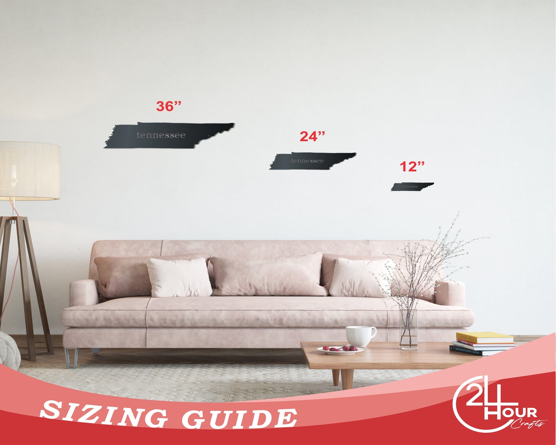 Metal Tennessee Wall Art - Custom Metal US State Sign - 14 Color Options