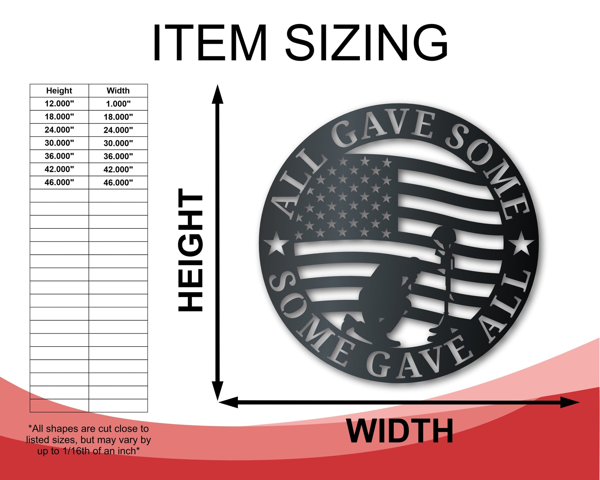 Metal USA Veteran Sacrifice Wall Art | Patriotic Veteran | Memorial Day | Indoor Outdoor | Up to 36" | Over 20 Color Options