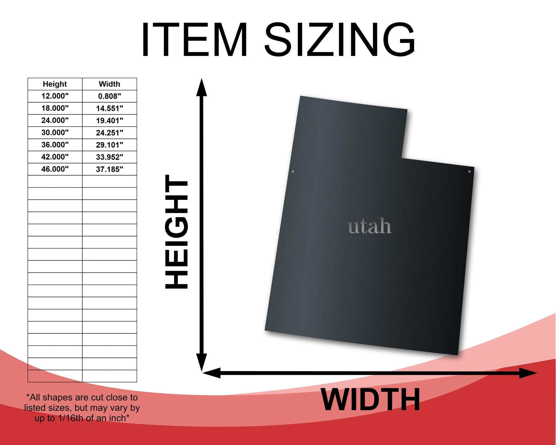 Metal Utah Wall Art - Custom Metal US State Sign - 14 Color Options