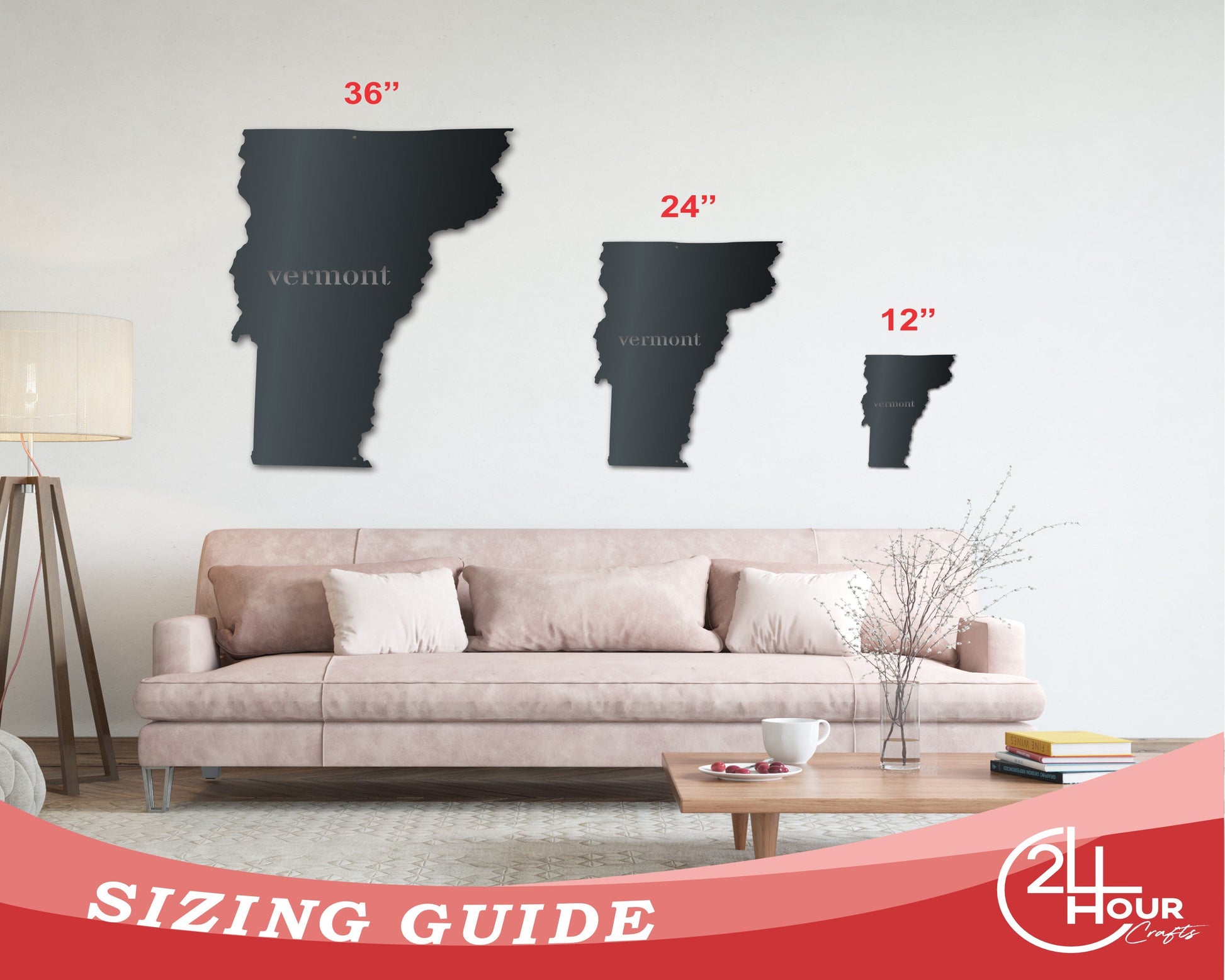Metal Vermont Wall Art - Custom Metal US State Sign - 14 Color Options
