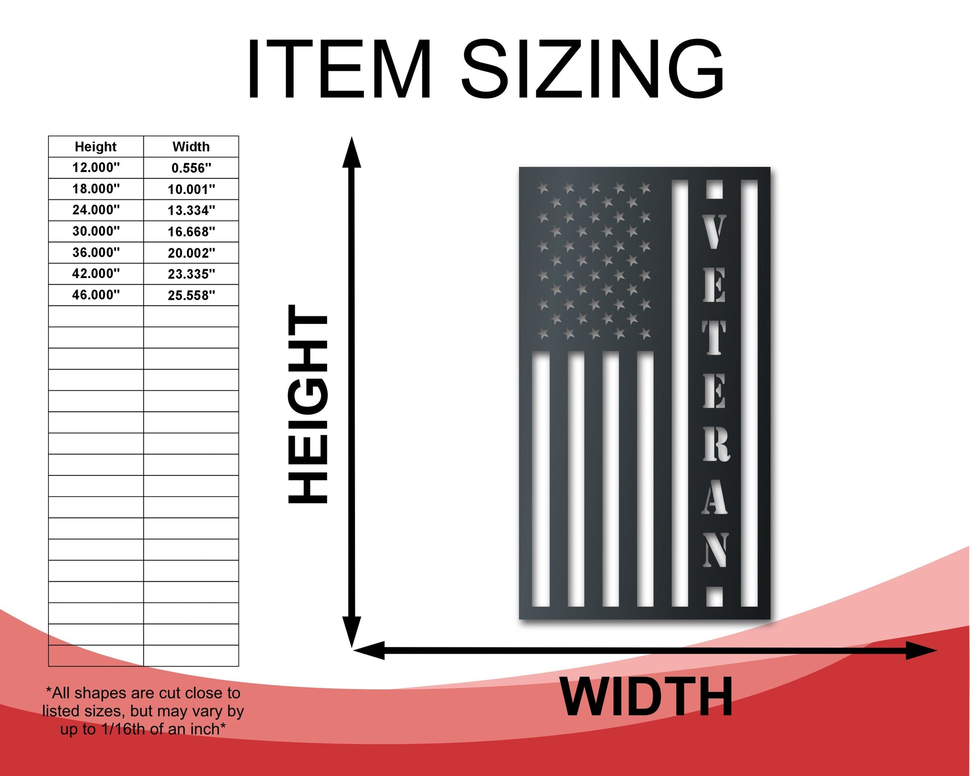Metal Veteran USA Flag Wall Art | Veterans Patriotic | Indoor Outdoor | Up to 36" | Over 20 Color Options