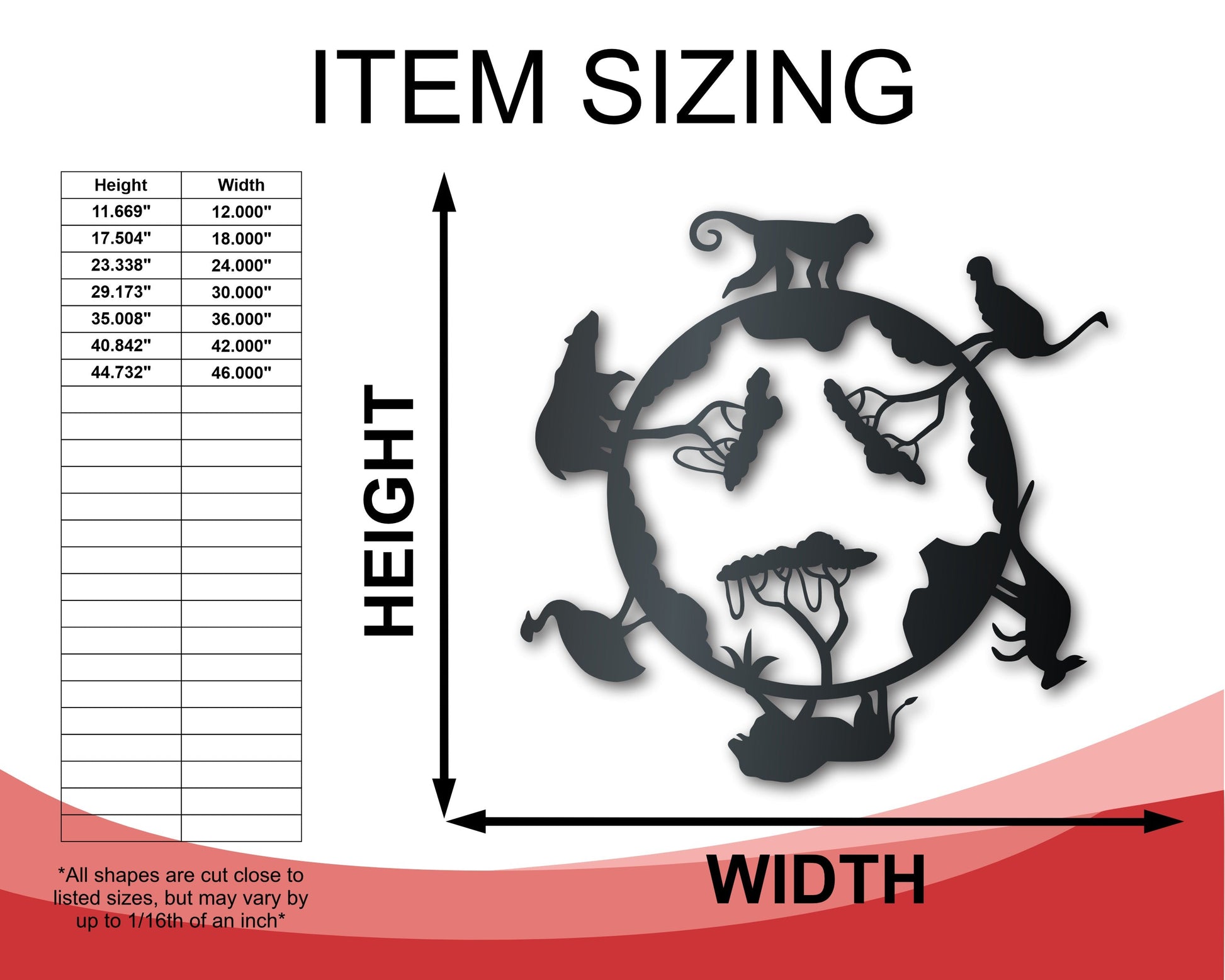 Metal World Safari Sign | Metal Zoo Animals Wall Art | Indoor Outdoor | Up to 46" | Over 20 Color Options