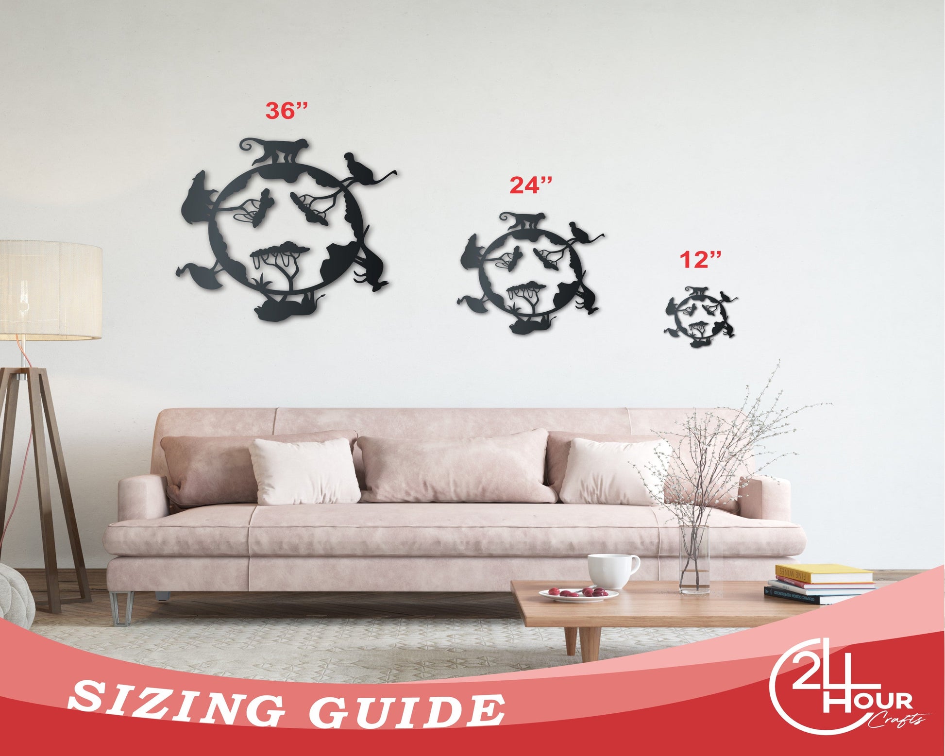 Introducing the Metal World Safari Sign, your gateway to a wild adventure right in the comfort of your own space! This stunning Metal Zoo Animals Wall Art brings the majesty of the animal kingdom to your indoor or outdoor environment. With a range of sizes from 12 to 46 inches, and over 20 captivating color options, you can customize your very own menagerie.