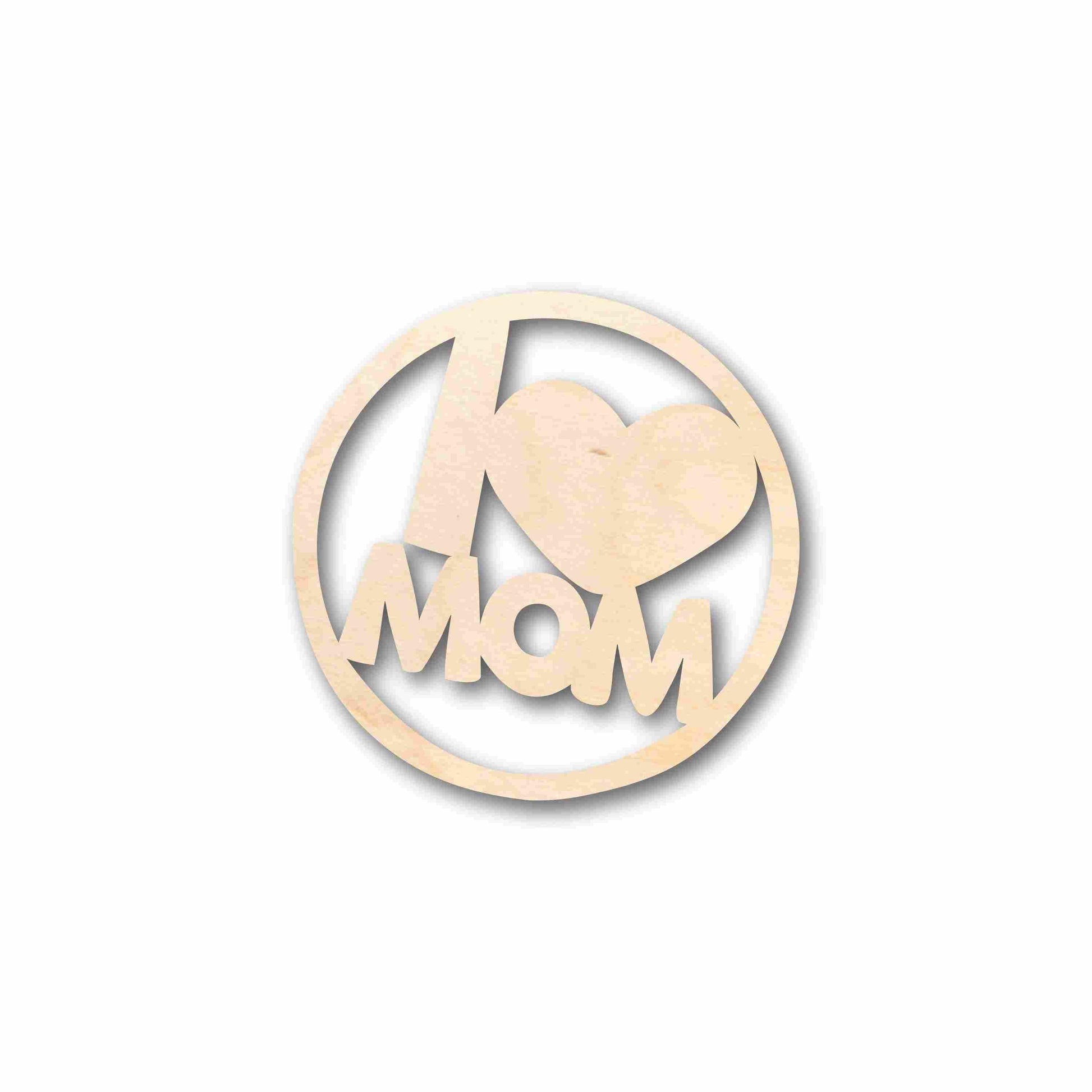 Mother's Day Craft Unfinished Wood Cutout "I Heart Mom" Round Circle DIY handmade Gift