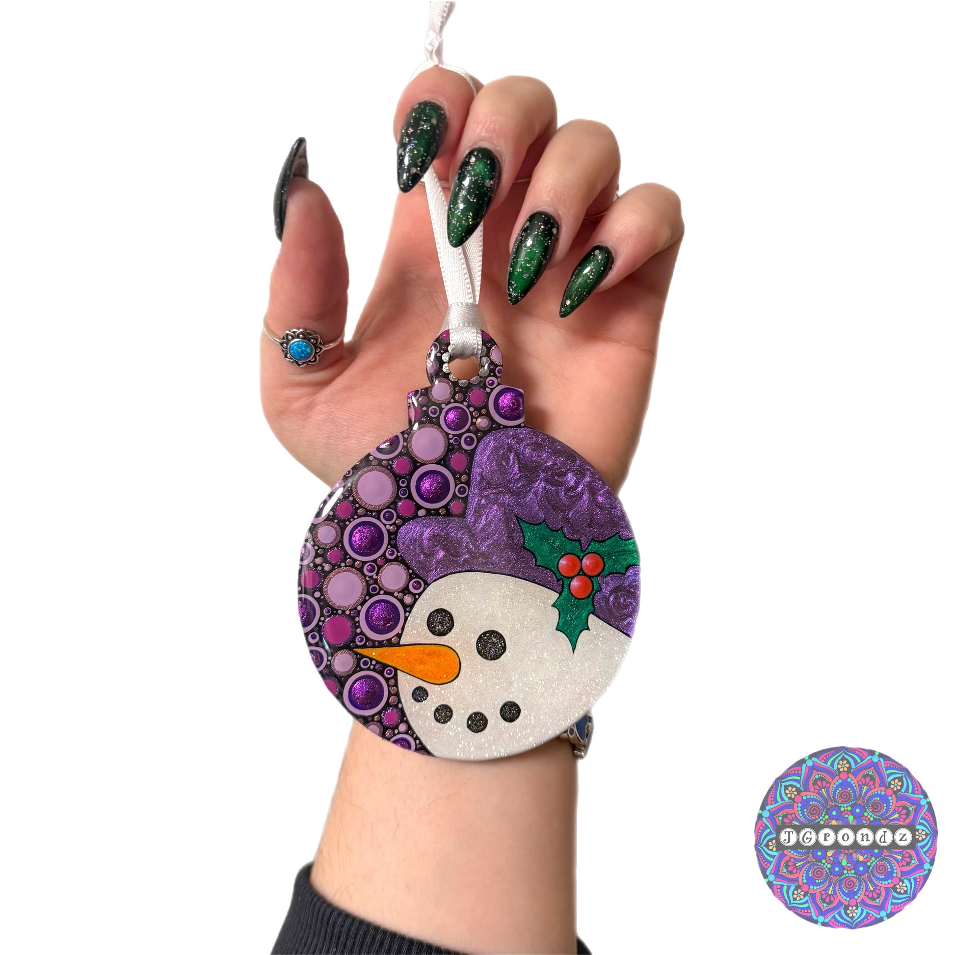 4” Painted etched wood ornament