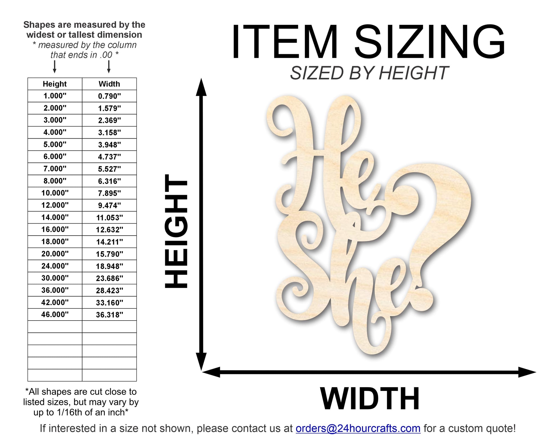 Unfinished He She Sign Shape | DIY Craft Cutout | up to 46" DIY