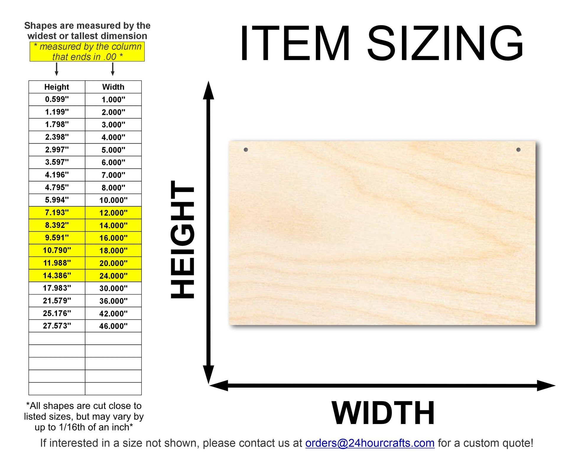 Unleash your creativity with our Unfinished Wooden Door Hangers! Designed for easy DIY crafting, this cutout features pre-drilled holes and a variety of holiday and basic shapes. Affordable and fun, our blank door hangers are a must-have for any crafting experience. Make your door stand out (or hang out) with our up to 24" door hanger!