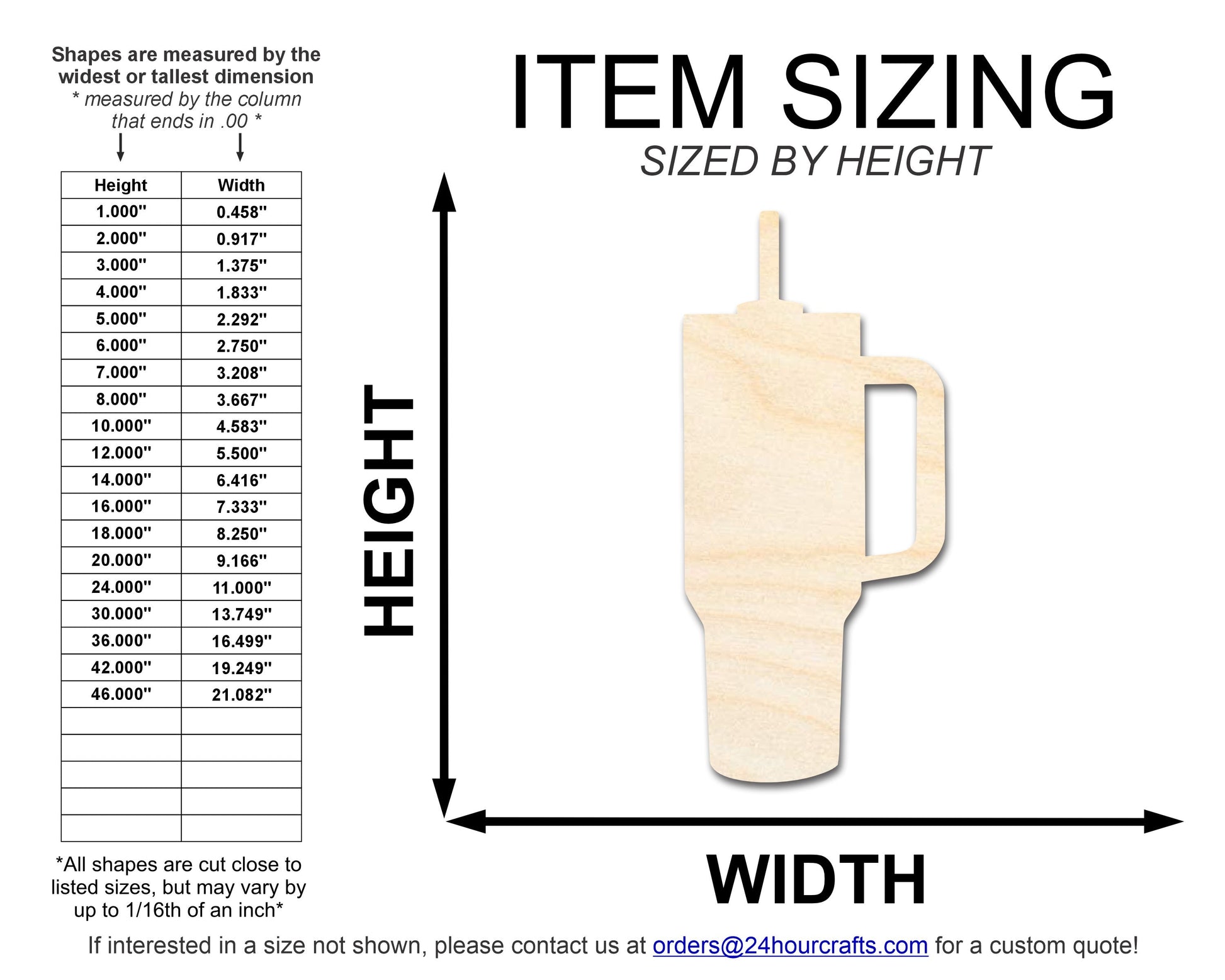Unfinished Tumbler Silhouette | DIY Craft Cutout | up to 46" DIY